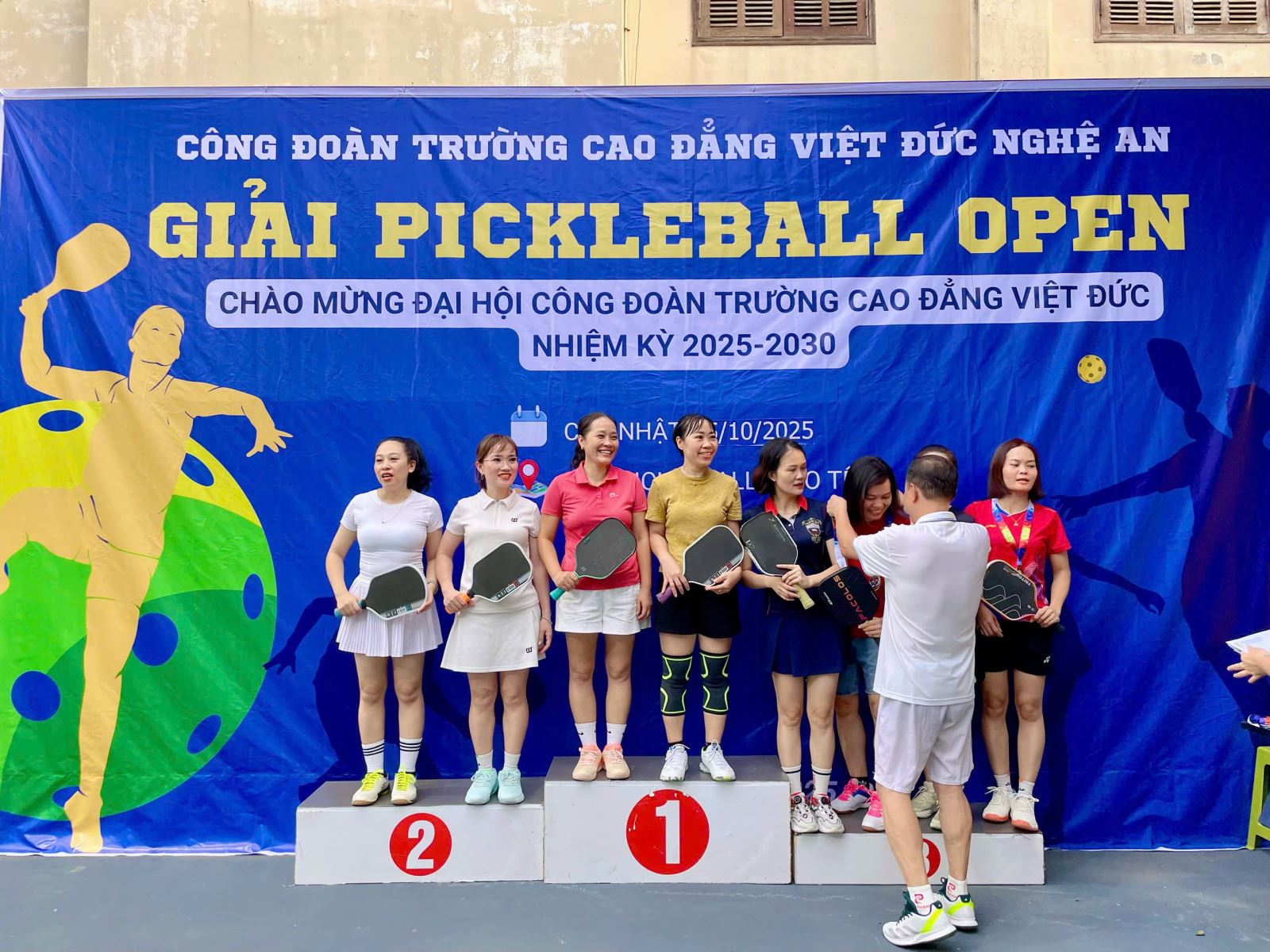 Giải Pickleball Open khép lại trong không khí vui tươi, phấn khởi, là điểm nhấn ý nghĩa trong chuỗi hoạt động chào mừng Đại hội Công đoàn Trường Cao đẳng Việt – Đức Nghệ An, nhiệm kỳ 2025 – 2030. Thành công của giải đấu không chỉ thể hiện tinh thần thể thao cao thượng mà còn là minh chứng cho sự gắn kết, đồng lòng của tập thể cán bộ, giảng viên, đoàn viên công đoàn cùng hướng tới mục tiêu xây dựng Công đoàn vững mạnh, vì quyền lợi và hạnh phúc của đoàn viên.