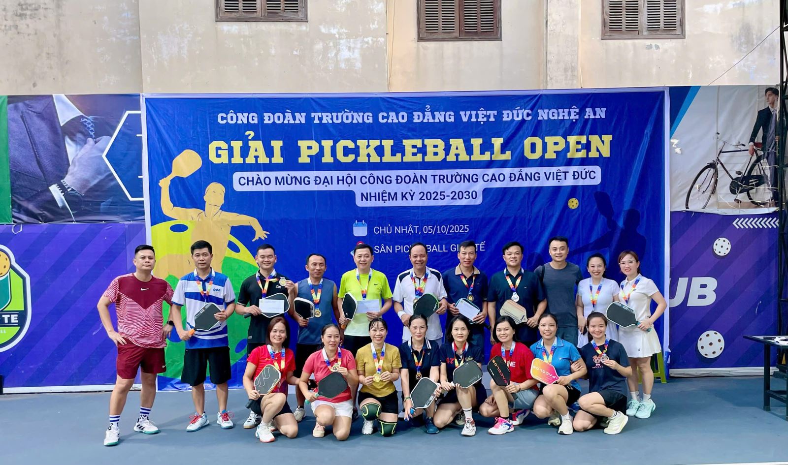 Hòa trong không khí thi đua sôi nổi chào mừng Đại hội Công đoàn Trường Cao đẳng Việt – Đức Nghệ An, Khóa XII, nhiệm kỳ 2025 – 2030, ngày 05/10/2025, Công đoàn Trường tổ chức Giải Pickleball Open tại Cụm sân Giao tế, Nghệ An. Giải đấu thu hút đông đảo cán bộ, giảng viên, đoàn viên công đoàn tham gia, tạo nên một sân chơi thể thao sôi động, đoàn kết và đầy hứng khởi.