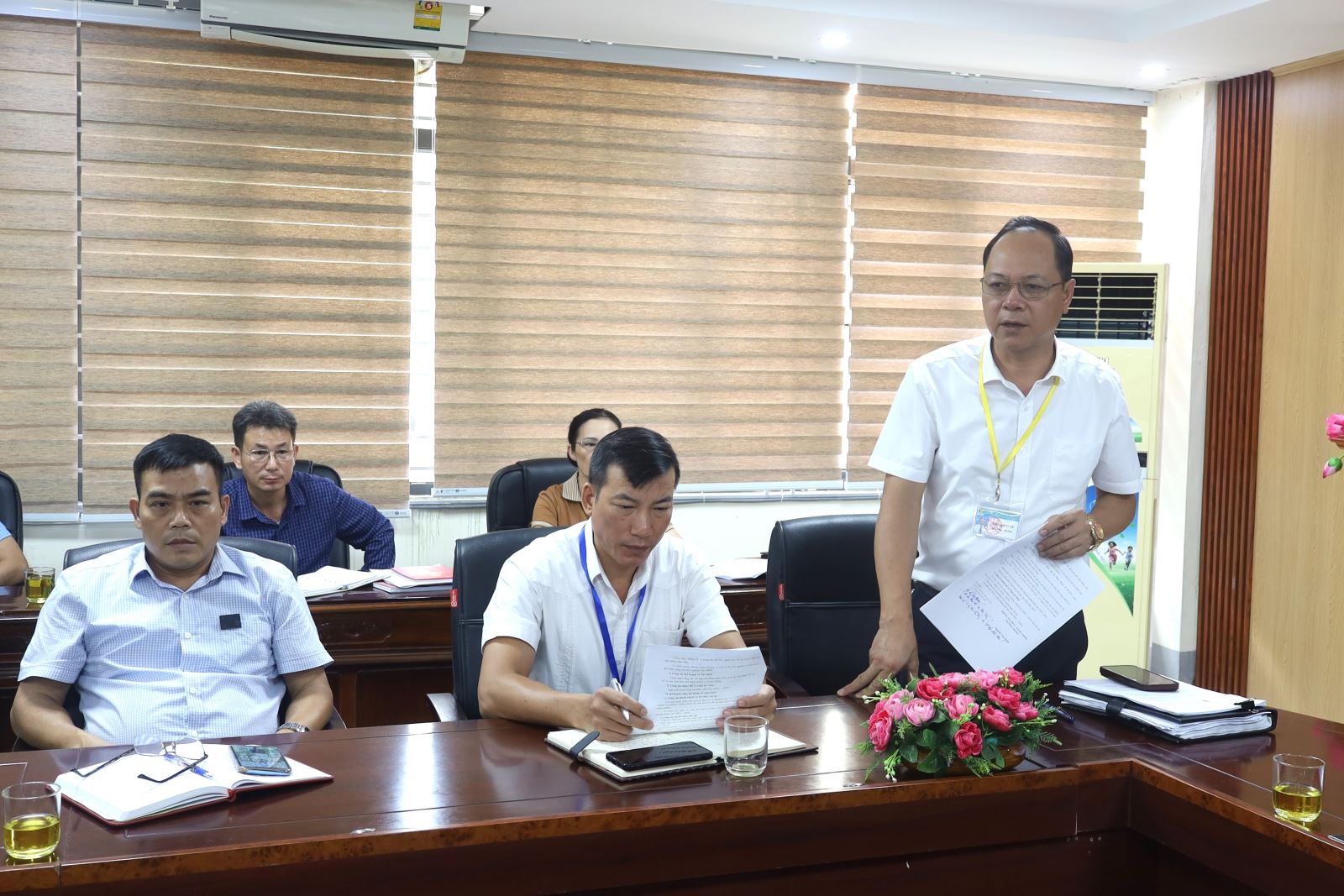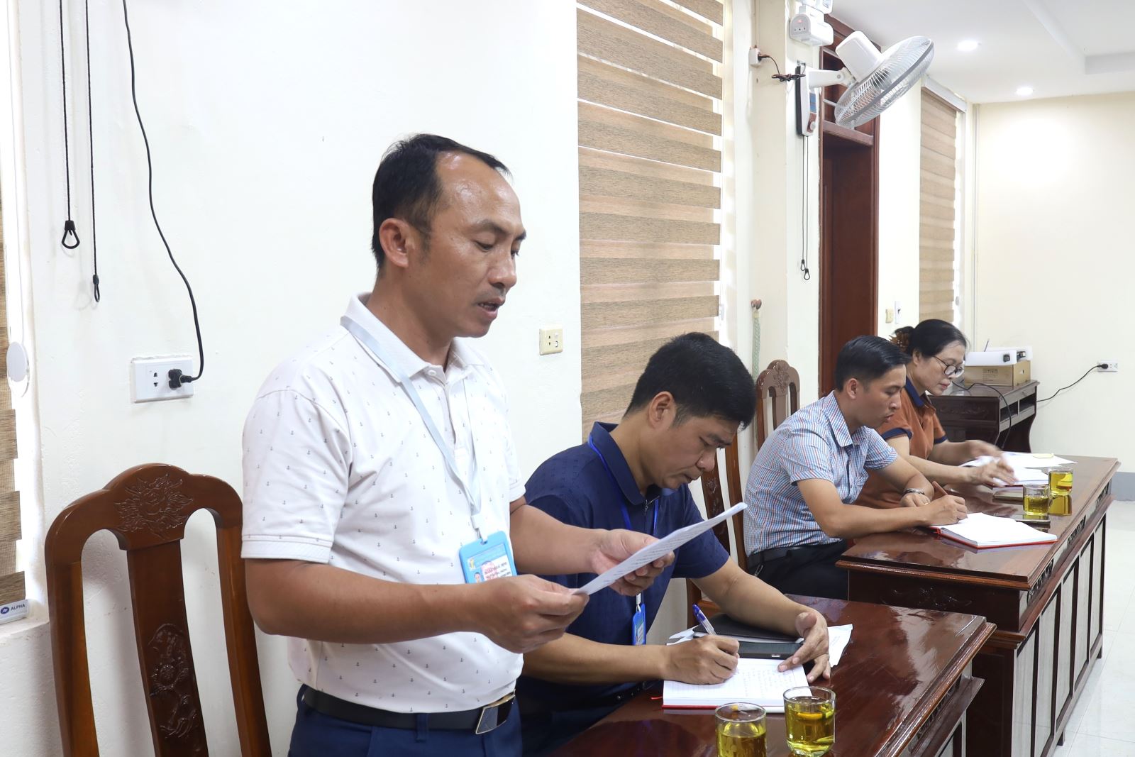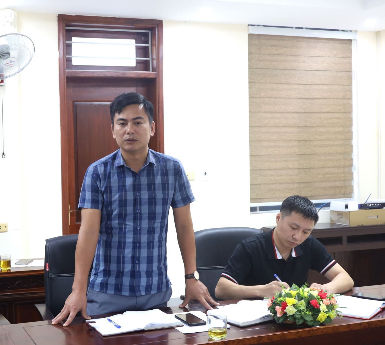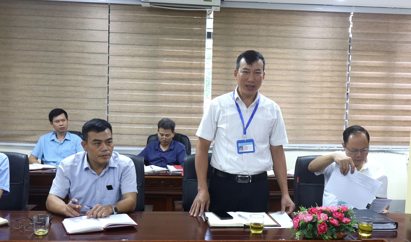 ThS. Nguyễn Khắc Định - Phó Trưởng phòng Tổ chức - Hành chính trình bày Báo cáo tóm tắt kết quả công tác tháng 9, phương hướng nhiệm vụ trọng tâm tháng 10. Ảnh: Trịnh Hường