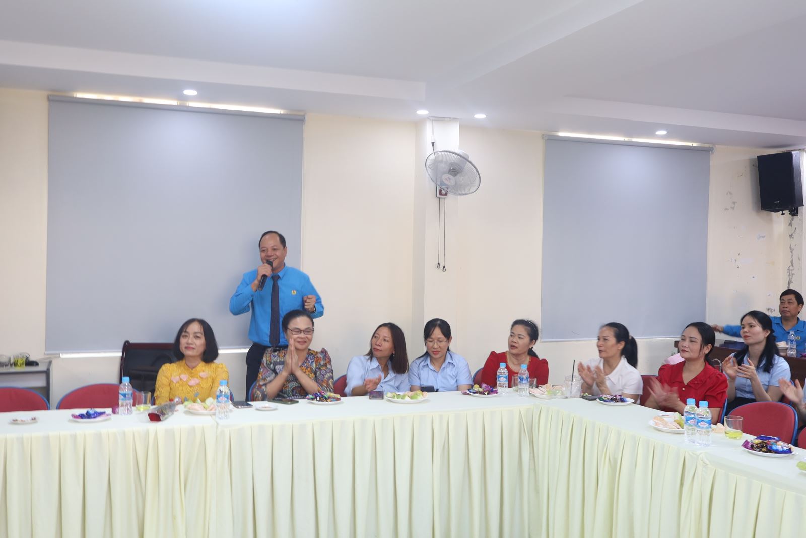 ThS. Cao Anh Tuấn - Phó Hiệu trưởng, Chủ tịch Công đoàn trường phát biểu chúc mừng chị em đoàn viên Công đoàn trong toàn Trường. Ảnh: Trịnh Hường