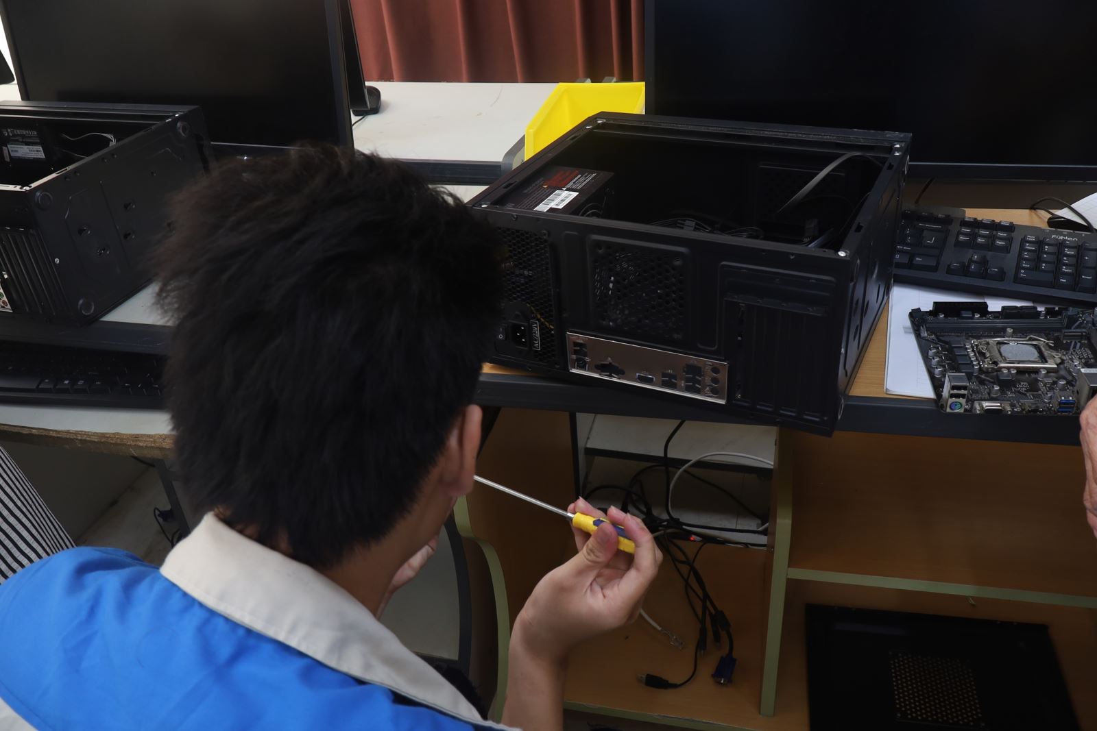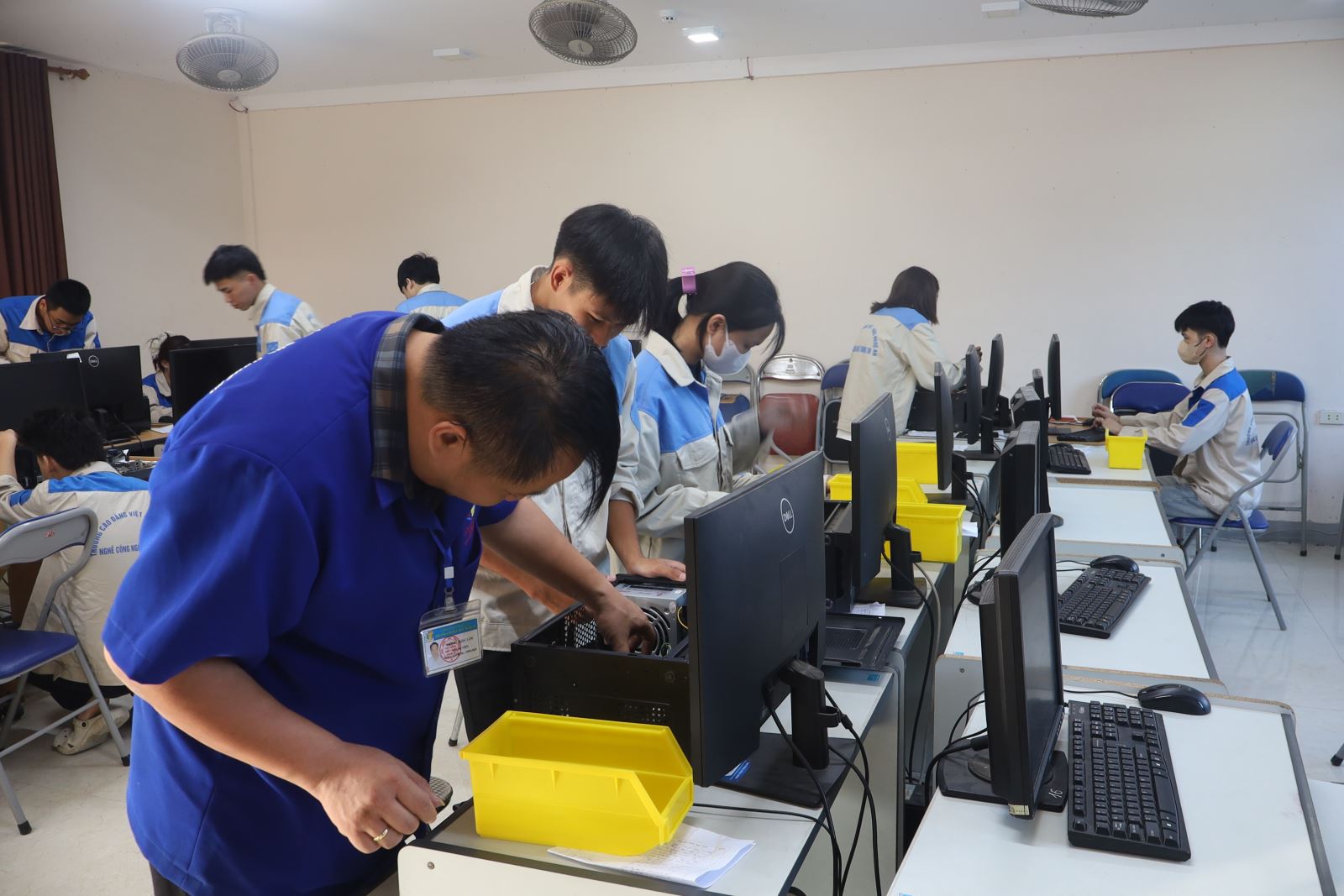Các thí sinh dự thi thực hành nghề Sửa chữa lắp ráp máy tính. Ảnh: Trịnh Hường