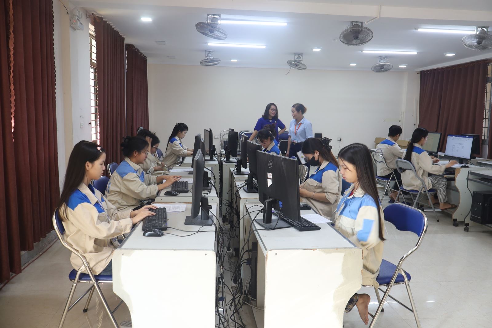Các thí sinh dự thi thực hành nghề Tin học văn phòng. Ảnh: Trịnh Hường