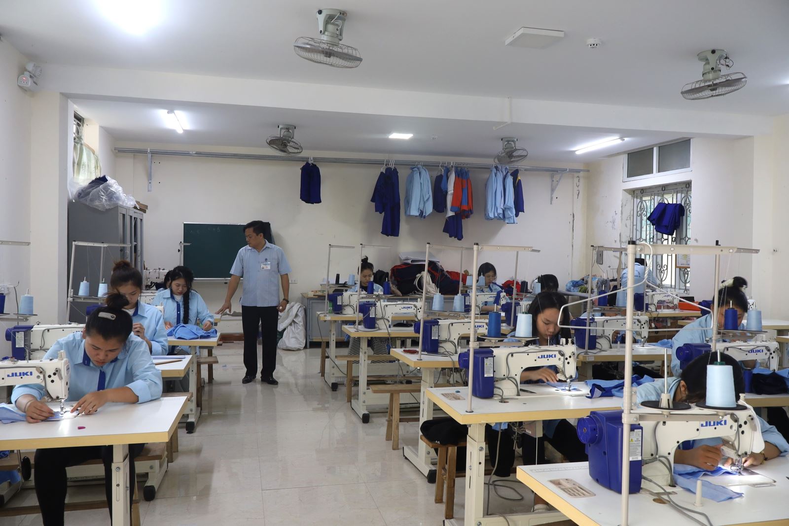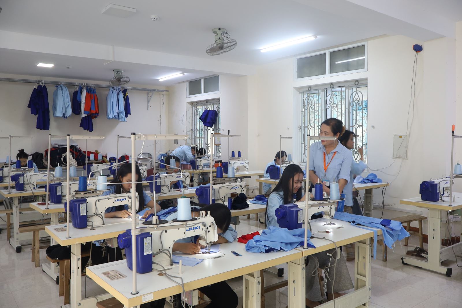 Các thí sinh dự thi thực hành nghề May thời trang. Ảnh: Trịnh Hường