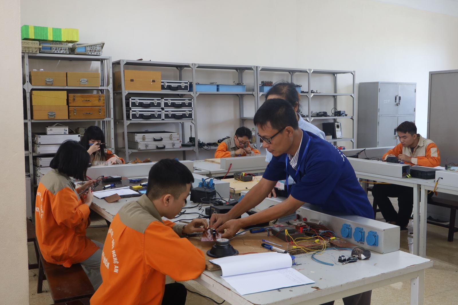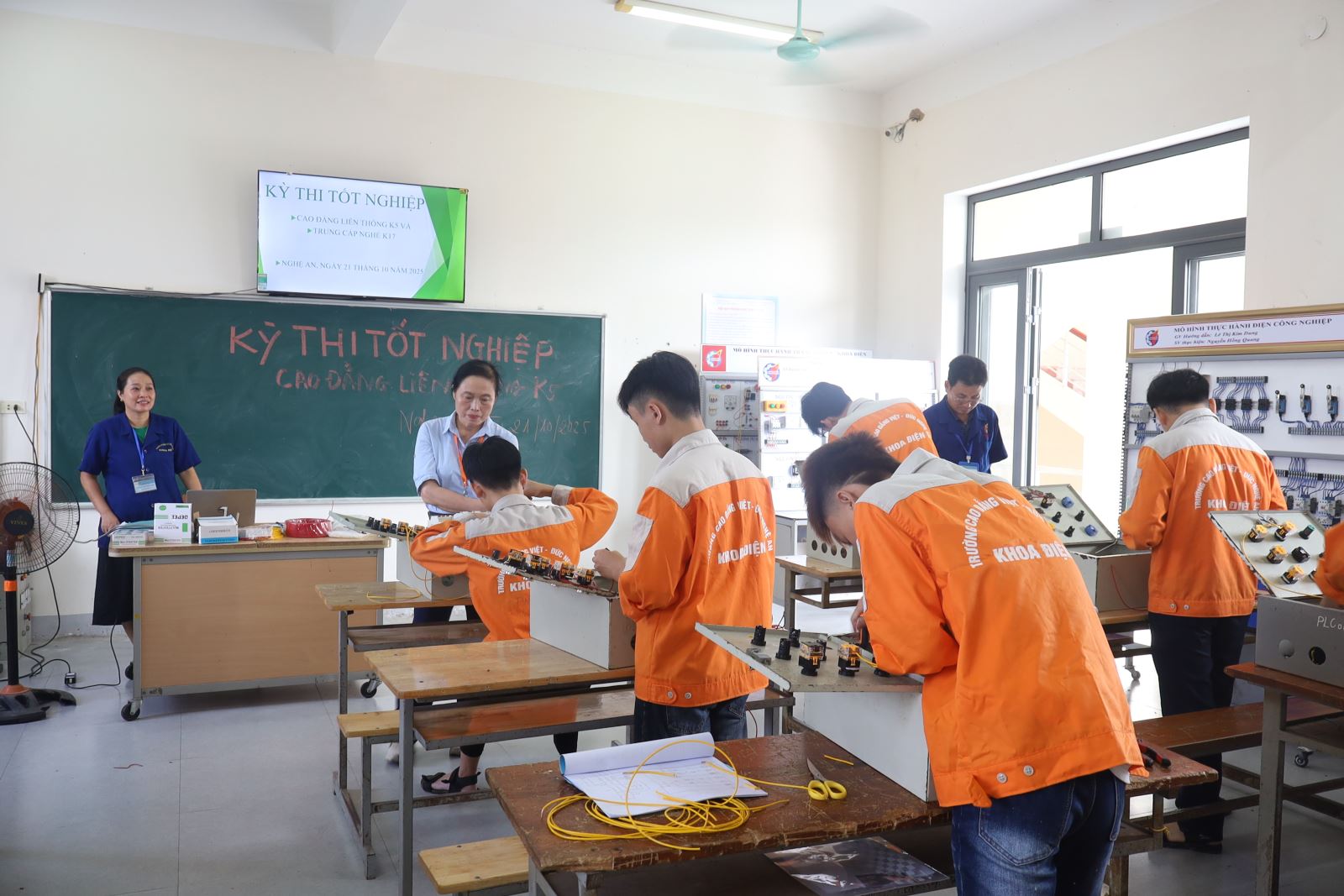 Thực hiện Kế hoạch năm học 2025 – 2026, từ ngày 20/10 đến ngày 22/10/2024, Trường Cao đẳng Việt – Đức Nghệ An tổ chức Kỳ thi tốt nghiệp cho sinh viên Cao đẳng liên thông Khóa 05 các nghề: Công nghệ ô tô, Điện công nghiệp, Điện lạnh, nghề Hàn và Trung cấp Khóa 17 các nghề: Điện Tử công nghiệp, Điện Công nghiệp, Điện lạnh, Công nghệ ô tô, Hàn, Tin học văn phòng, Kỹ thuật sửa chữa lắp ráp máy tính, Vận hành máy TCN và May thời trang. ThS. Nguyễn Hữu Hằng – Bí thư Đảng ủy, Hiệu trưởng, Chủ tịch Hội đồng thi Tốt nghiệp điều hành Kỳ thi.