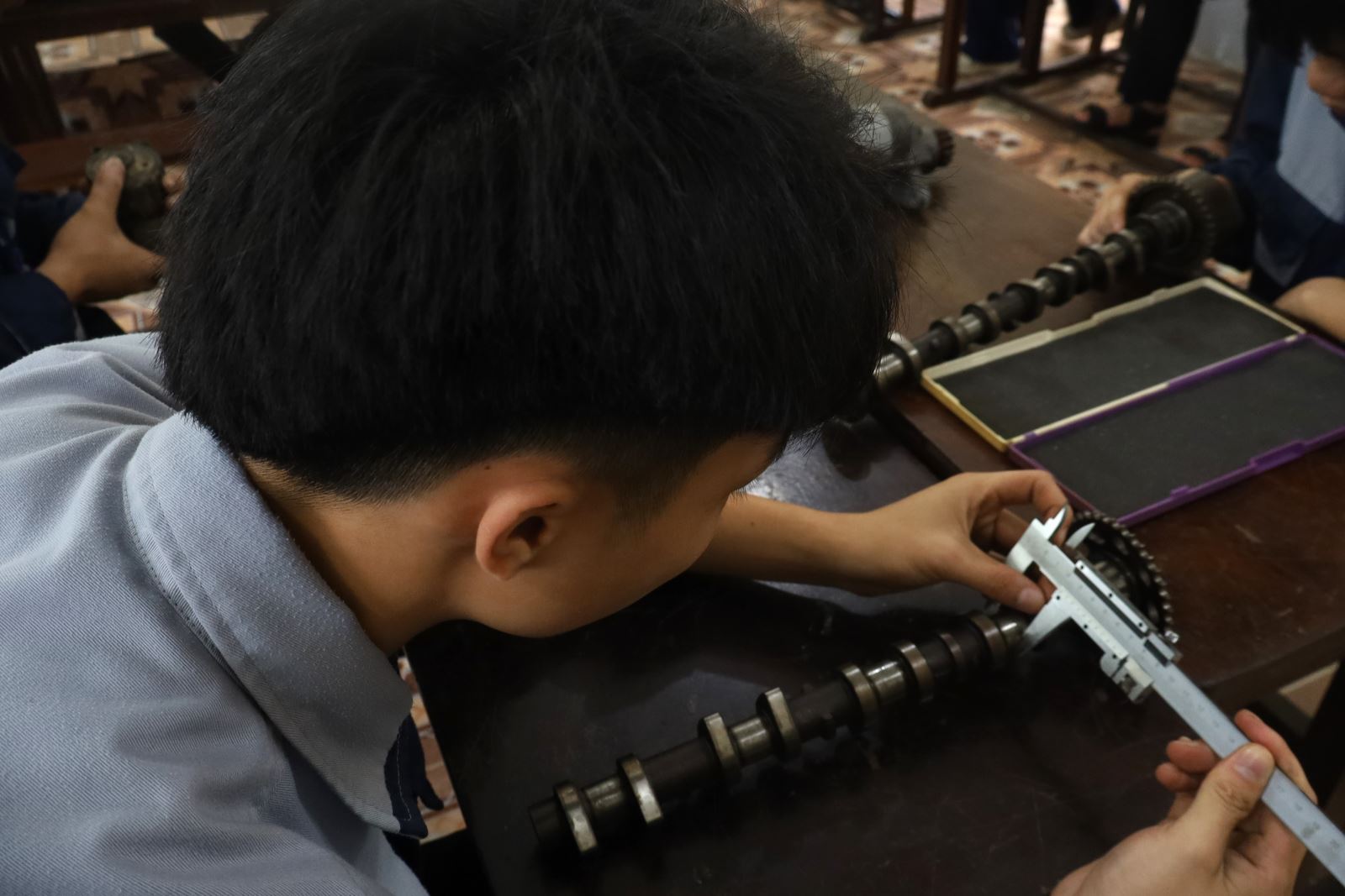 Các thí sinh dự thi Thực hành nghề Công nghệ ô tô. Ảnh: Trịnh Hường
