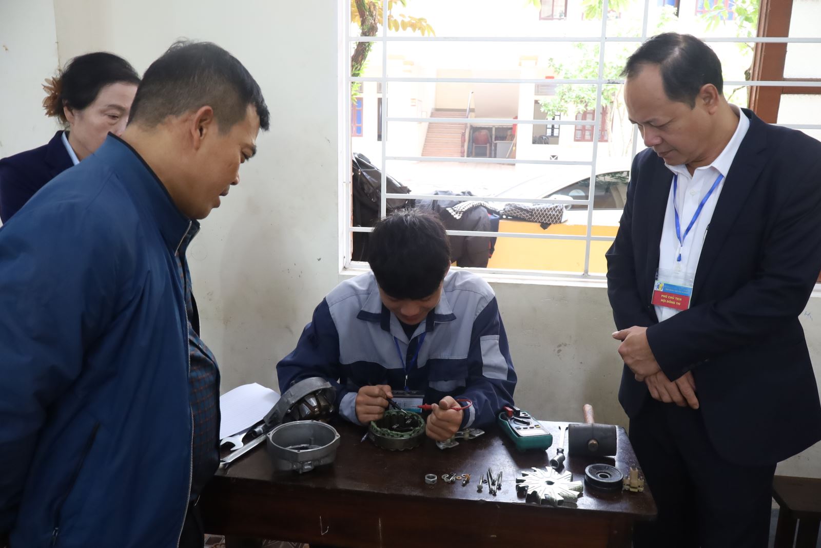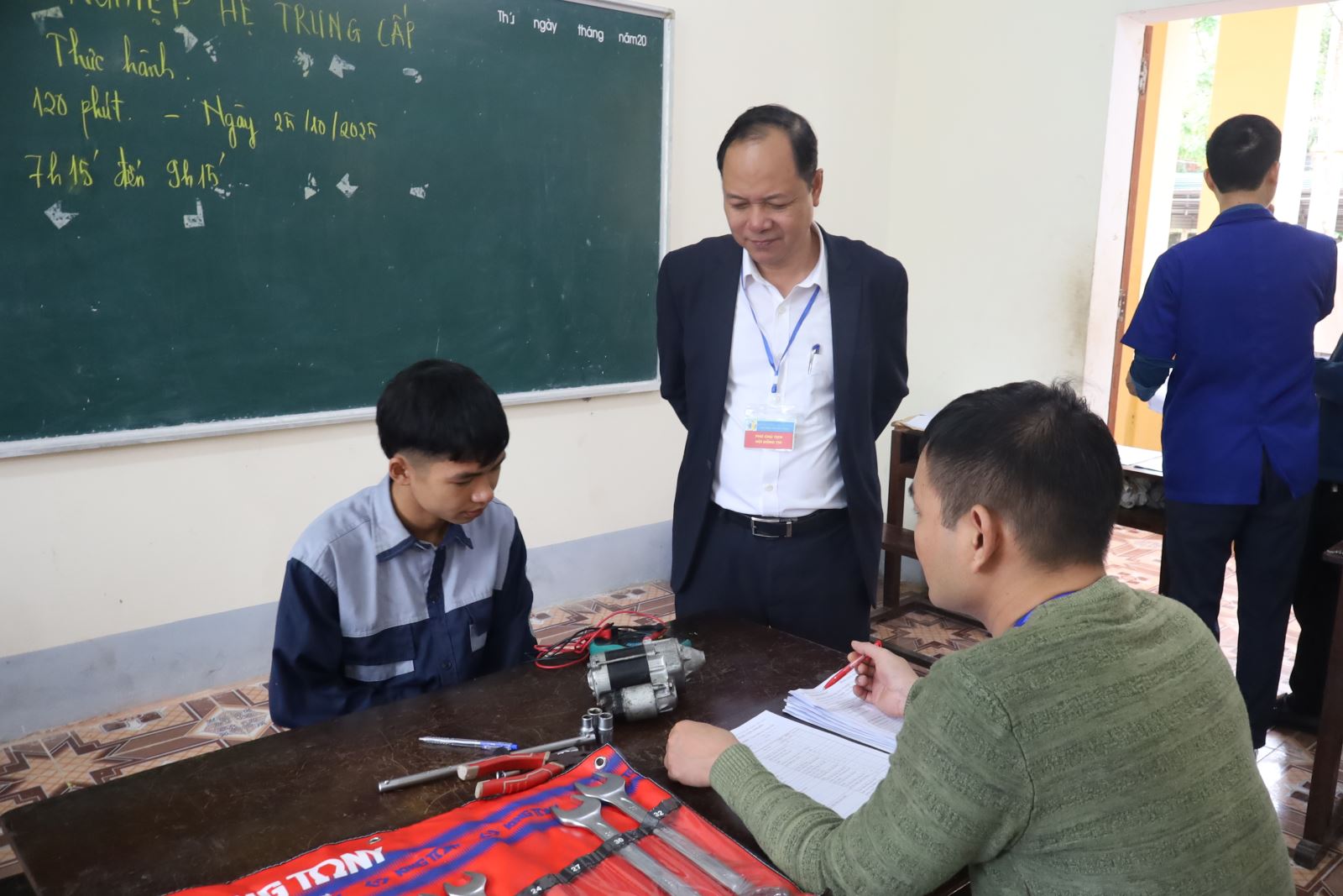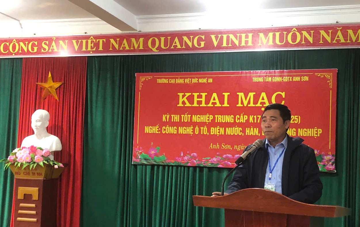 Cũng tại buổi thi, thầy giáo Bùi Đức Tuấn – Giám đốc Trung tâm GDNN - GDTX Anh Sơn gửi lời cảm ơn tới Đảng ủy, Ban Giám hiệu Nhà trường đã quan tâm, hỗ trợ, tạo điều kiện để học sinh tại trung tâm được tiếp cận chương trình đào tạo nghề chất lượng cao, có cơ hội được cấp Bằng Tốt nghiệp chính quy, mở rộng cánh cửa việc làm sau khi ra trường.
