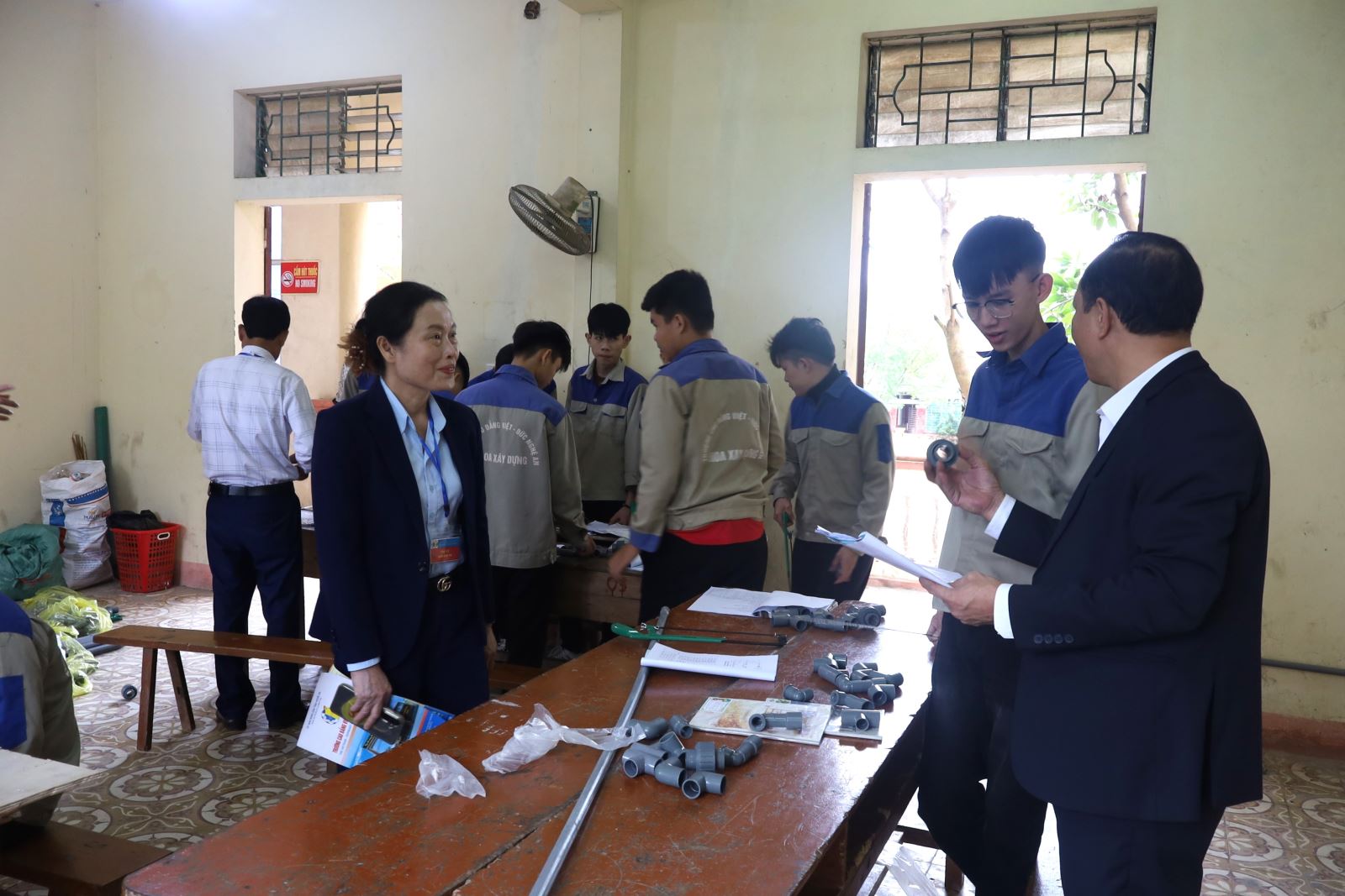 Các thí sinh dự thi Thực hành nghề Điện nước. Ảnh: Trịnh Hường