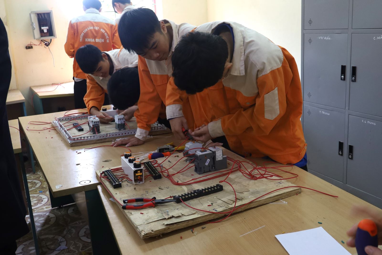 Các thí sinh dự thi Thực hành nghề Điện Công nghiệp. Ảnh: Trịnh Hường