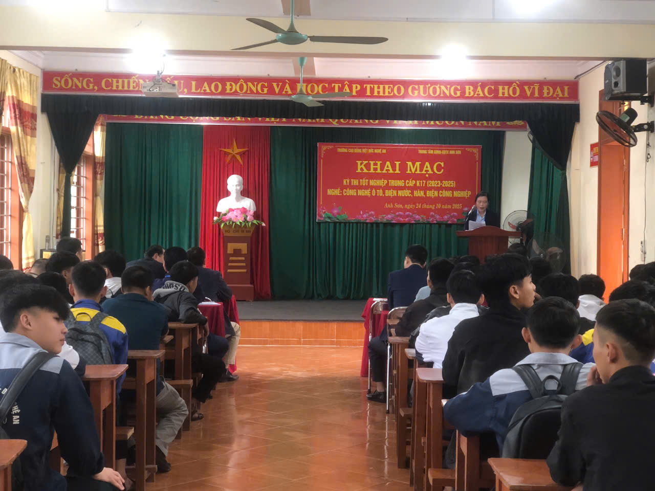 Thực hiện kế hoạch năm học 2025 – 2026, từ ngày 24/10 đến ngày 25/10/2025, Trường Cao đẳng Việt – Đức Nghệ An phối hợp với Trung tâm Giáo dục nghề nghiệp – Giáo dục thường xuyên Anh Sơn tổ chức Kỳ thi Tốt nghiệp các nghề: Điện Công nghiệp, Công nghệ ô tô, Hàn và Điện nước cho học sinh Trung cấp K17 theo học tại Trung tâm.