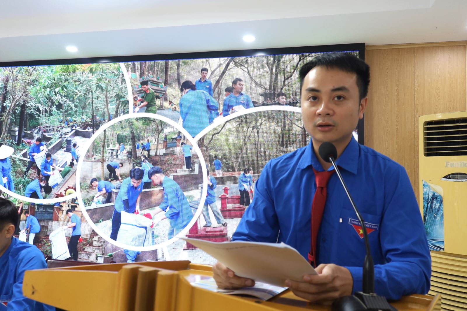 Đồng chí Nguyễn Hồng Phúc - Bí thư Liên chi đoàn Cơ khí - Xây dựng - Khoa học cơ bản phát biểu tham luận về "Đoàn viên thanh niên tiên phong trong Chuyển đổi số và Ứng dụng Trí tuệ Nhân tạo (AI), nhằm nâng cao hiệu quả công tác Đoàn". Ảnh: Trịnh Hường