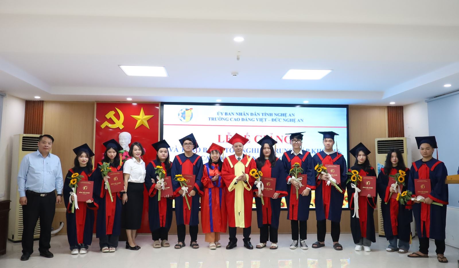 Nhân dịp kỷ niệm 43 năm Ngày Nhà giáo Việt Nam 20/11, Đảng ủy, Ban Giám hiệu cùng toàn thể học sinh, sinh viên Trường Cao đẳng Việt – Đức Nghệ An xin gửi đến quý thầy cô lời chúc mừng nồng nhiệt nhất. Kính chúc các thầy giáo, cô giáo, những người làm trong ngành Giáo dục luôn mạnh khỏe, hạnh phúc và tiếp tục giữ vững ngọn lửa đam mê, tận tâm cống hiến cho sự nghiệp giáo dục – đào tạo, góp phần xây dựng mái nhà Việt – Đức Nghệ An ngày càng phát triển, trở thành địa chỉ vàng tin cậy trong đào tạo nguồn nhân lực chất lượng cao cho quê hương, đất nước.