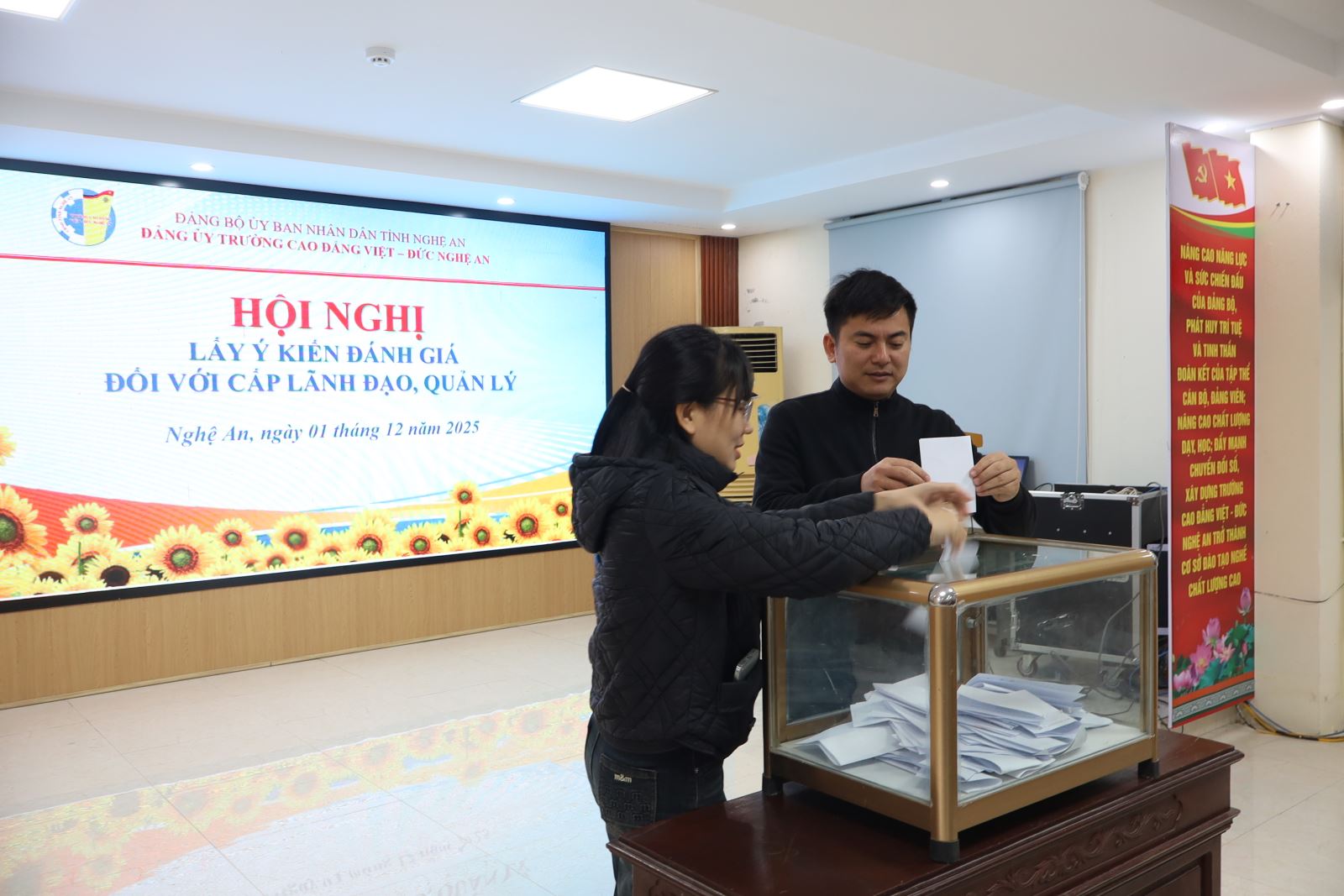 Hội nghị lấy ý kiến đánh giá đối với cấp lãnh đạo, quản lý là hoạt động thường niên, được Trường Cao đẳng Việt – Đức Nghệ An triển khai theo đúng quy định và hướng dẫn của cấp trên. Kết quả đánh giá sẽ là căn cứ quan trọng để Nhà trường tiếp tục kiện toàn đội ngũ cán bộ, góp phần nâng cao chất lượng đào tạo, đáp ứng nhu cầu nhân lực cho tỉnh Nghệ An và khu vực.