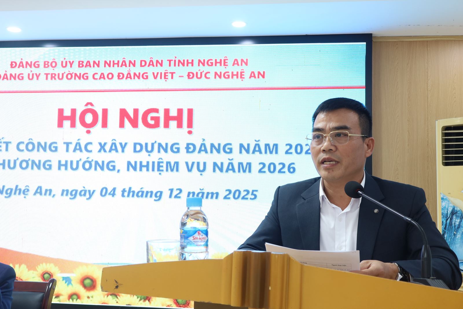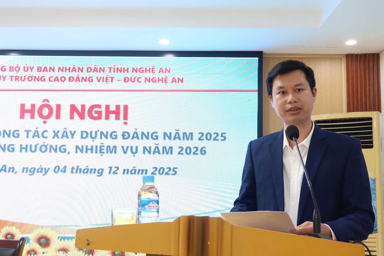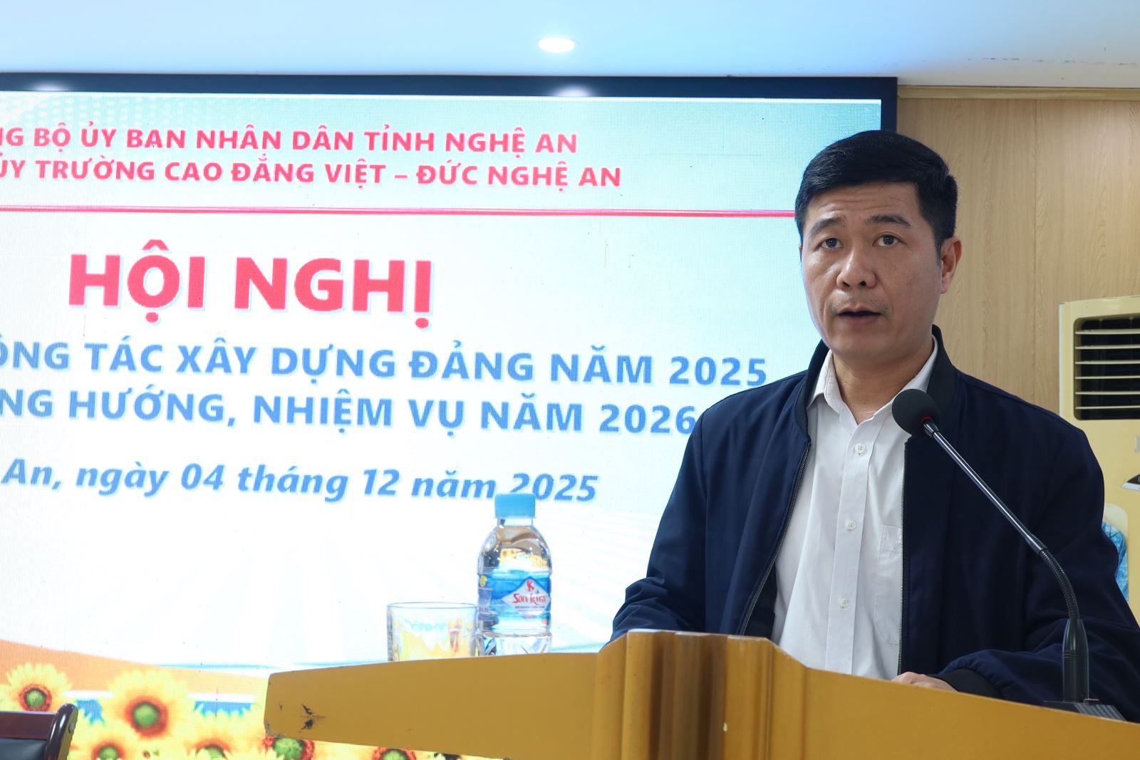 Đảng bộ Trường Cao đẳng Việt – Đức Nghệ An tổ chức Hội nghị Tổng kết công tác xây dựng Đảng năm 2025, triển khai phương hướng nhiệm vụ năm 2026, xác định nhiệm vụ trọng tâm cho giai đoạn mới