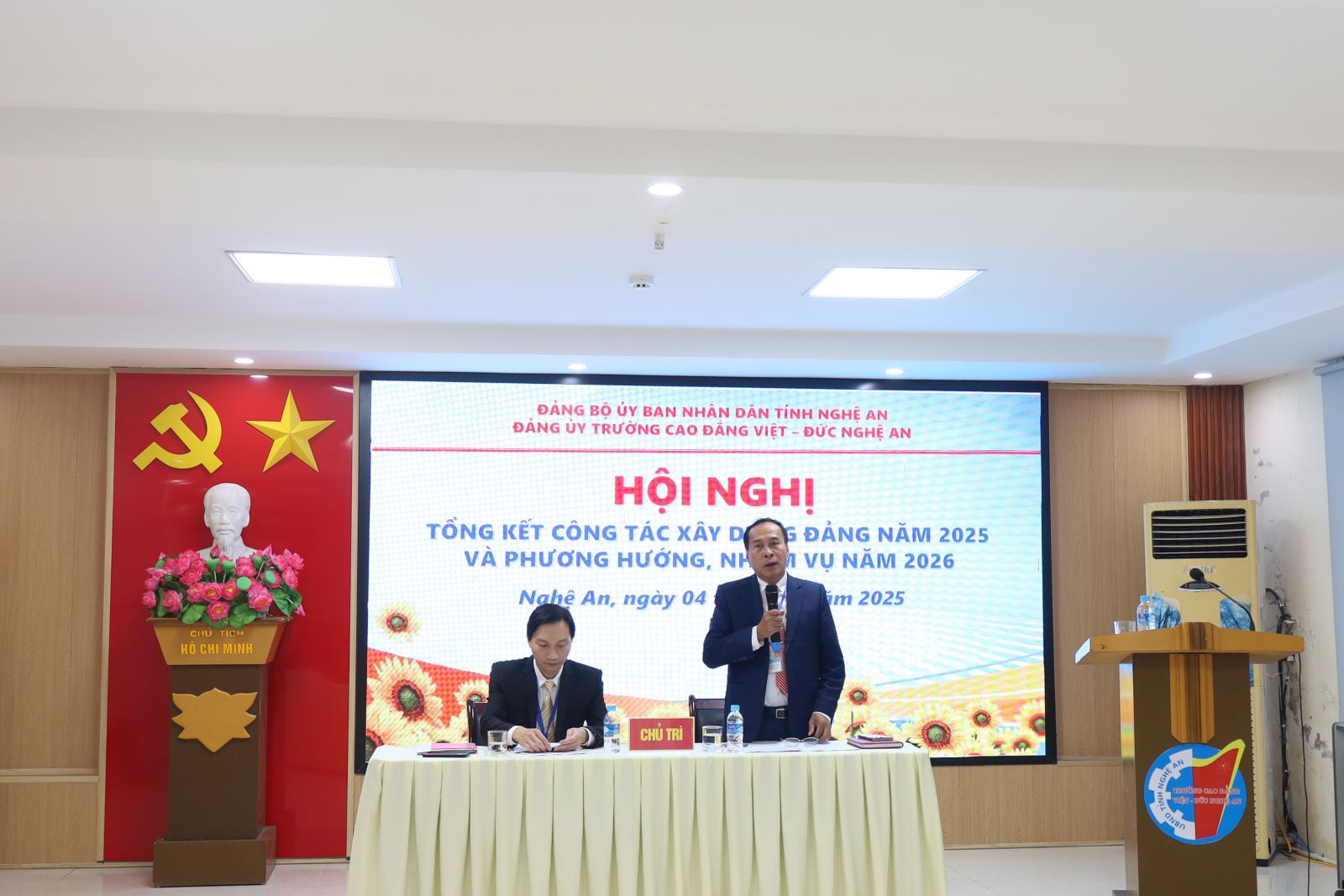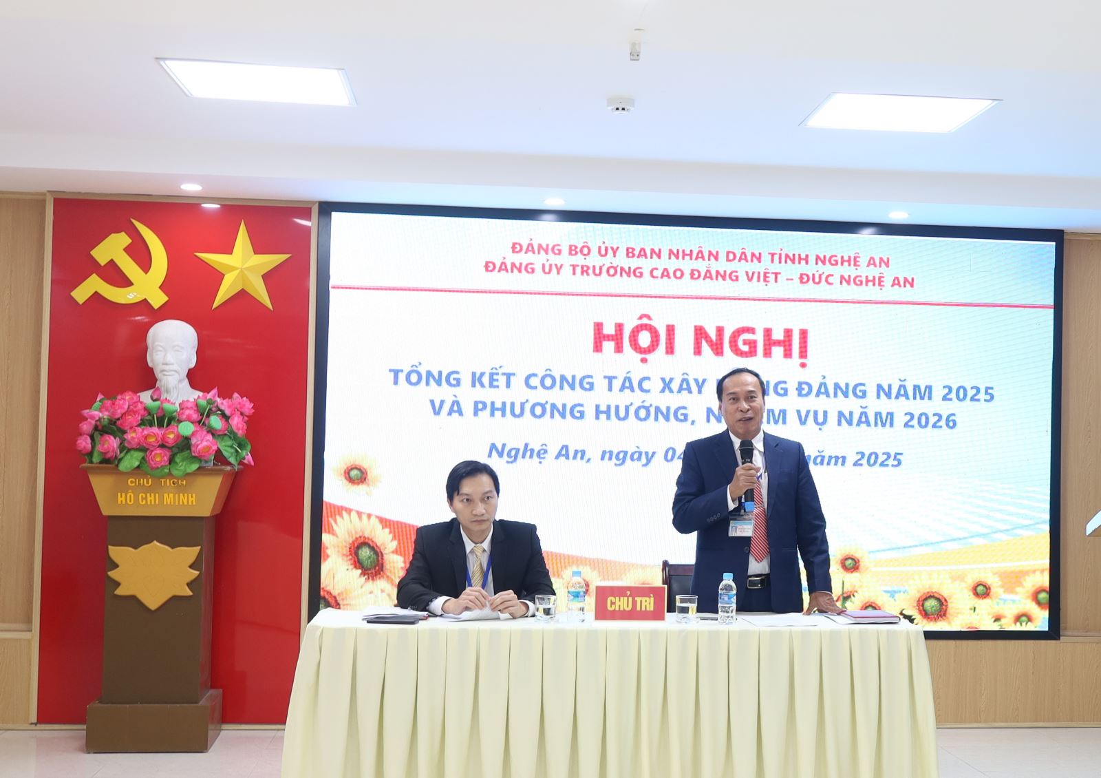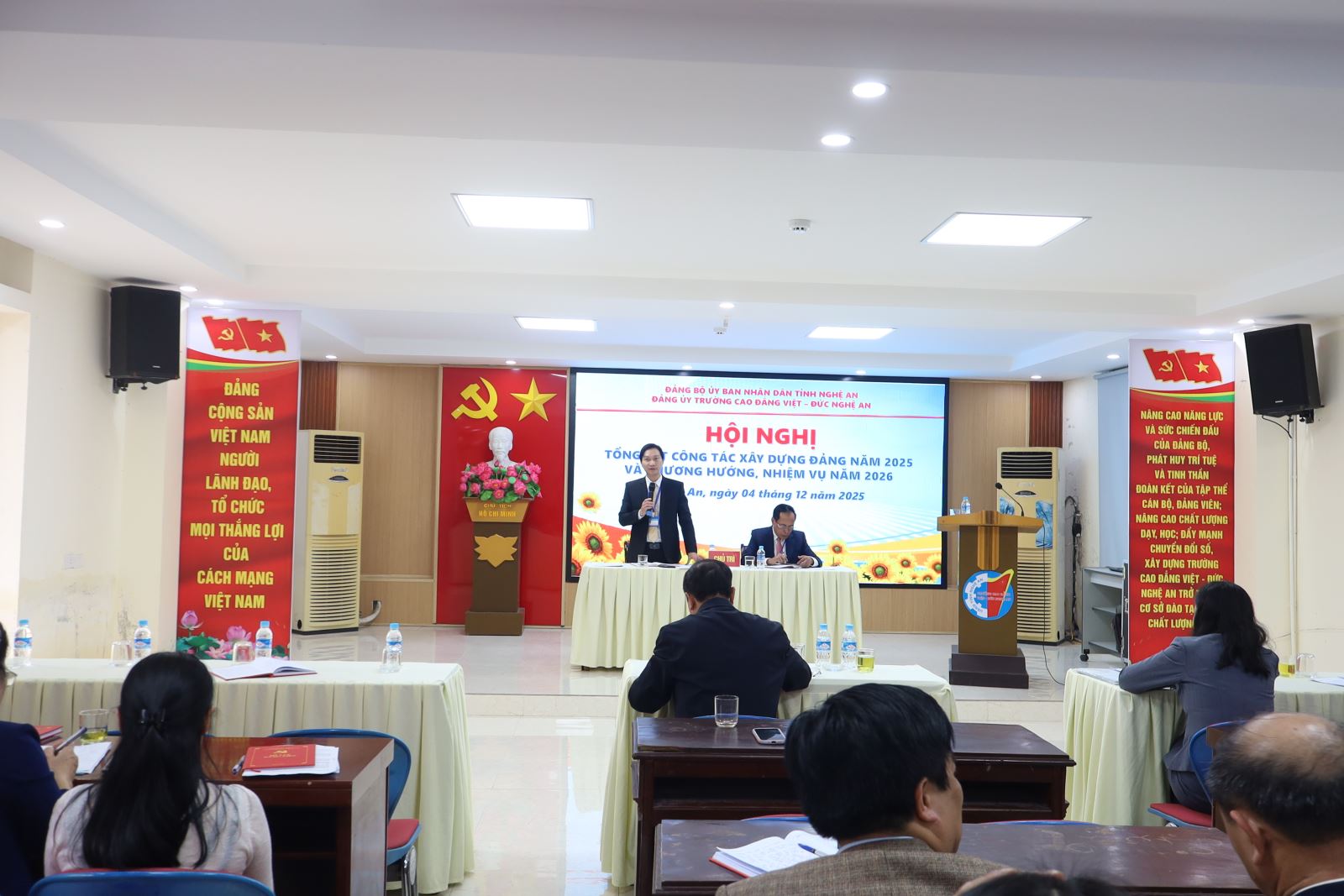 Đảng bộ Trường Cao đẳng Việt – Đức Nghệ An tổ chức Hội nghị Tổng kết công tác xây dựng Đảng năm 2025, triển khai phương hướng nhiệm vụ năm 2026, xác định nhiệm vụ trọng tâm cho giai đoạn mới
