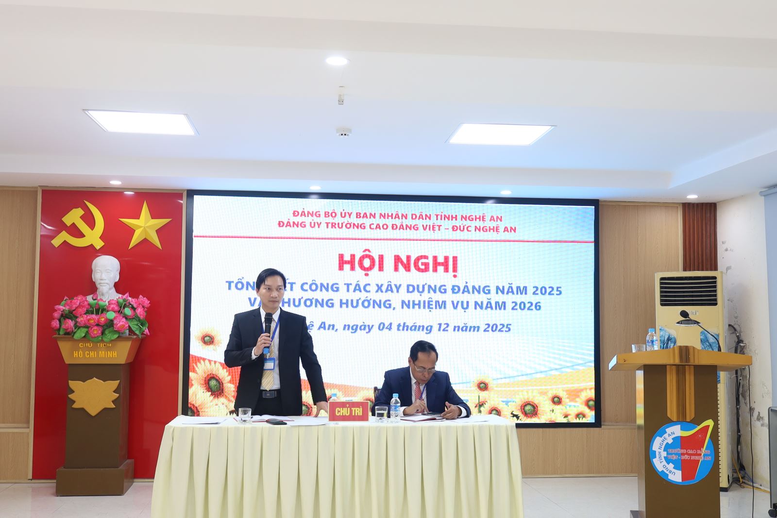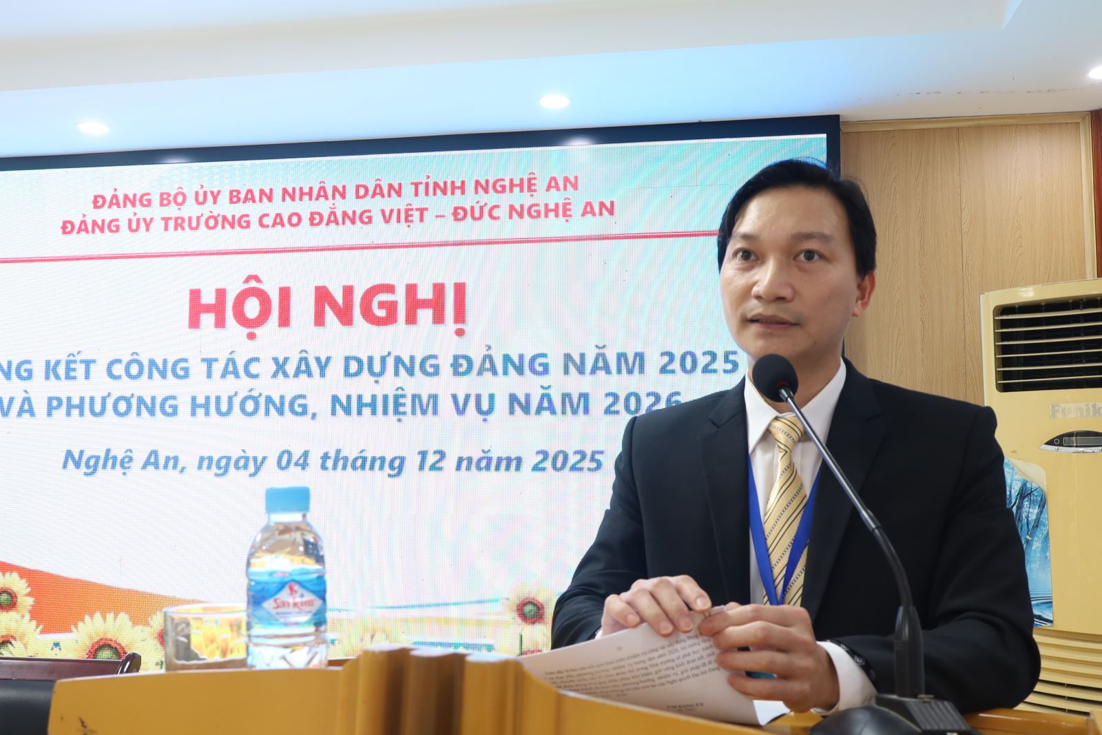 Chiều ngày 04/12/2025, Đảng bộ Trường Cao đẳng Việt – Đức Nghệ An tổ chức Hội nghị Tổng kết công tác xây dựng Đảng năm 2025 và triển khai phương hướng nhiệm vụ năm 2026.