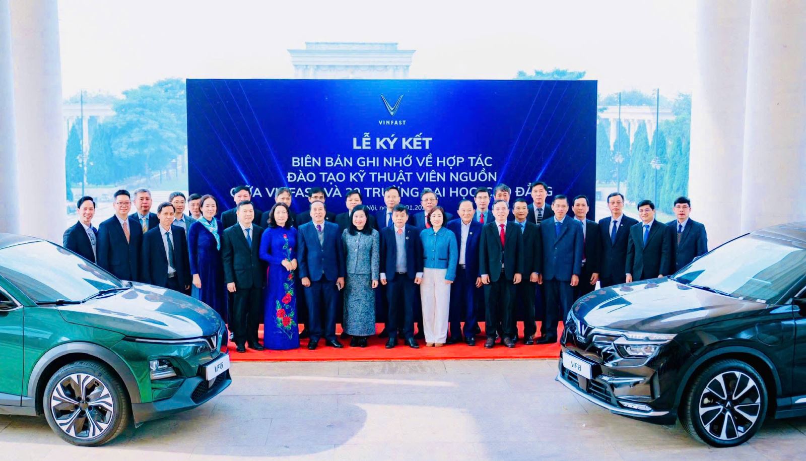 Buổi lễ Ký kết diễn ra trong không khí trang trọng, với sự tham dự của đại diện lãnh đạo Công ty Trách nhiệm hữu hạn Sản xuất và Kinh doanh VinFast; ThS. Nguyễn Hữu Hằng – Bí thư Đảng ủy, Hiệu trưởng cùng đại diện các phòng, khoa chuyên môn của hai đơn vị. Trường Cao đẳng Việt – Đức Nghệ An là cơ sở Giáo dục nghề nghiệp duy nhất của tỉnh Nghệ An được Công ty Vinfast lựa chọn Ký kết; đây là dấu mốc quan trọng, mở ra giai đoạn hợp tác mới, thiết thực và lâu dài giữa Nhà trường và doanh nghiệp hàng đầu trong lĩnh vực Công nghiệp Ô tô và công nghệ cao tại Việt Nam. Cũng trong khuôn khổ buổi Lễ Ký kết, Công ty Vinfast đã trao tặng Nhà trường 01 xe ô tô VF6 và 01 xe VF8.