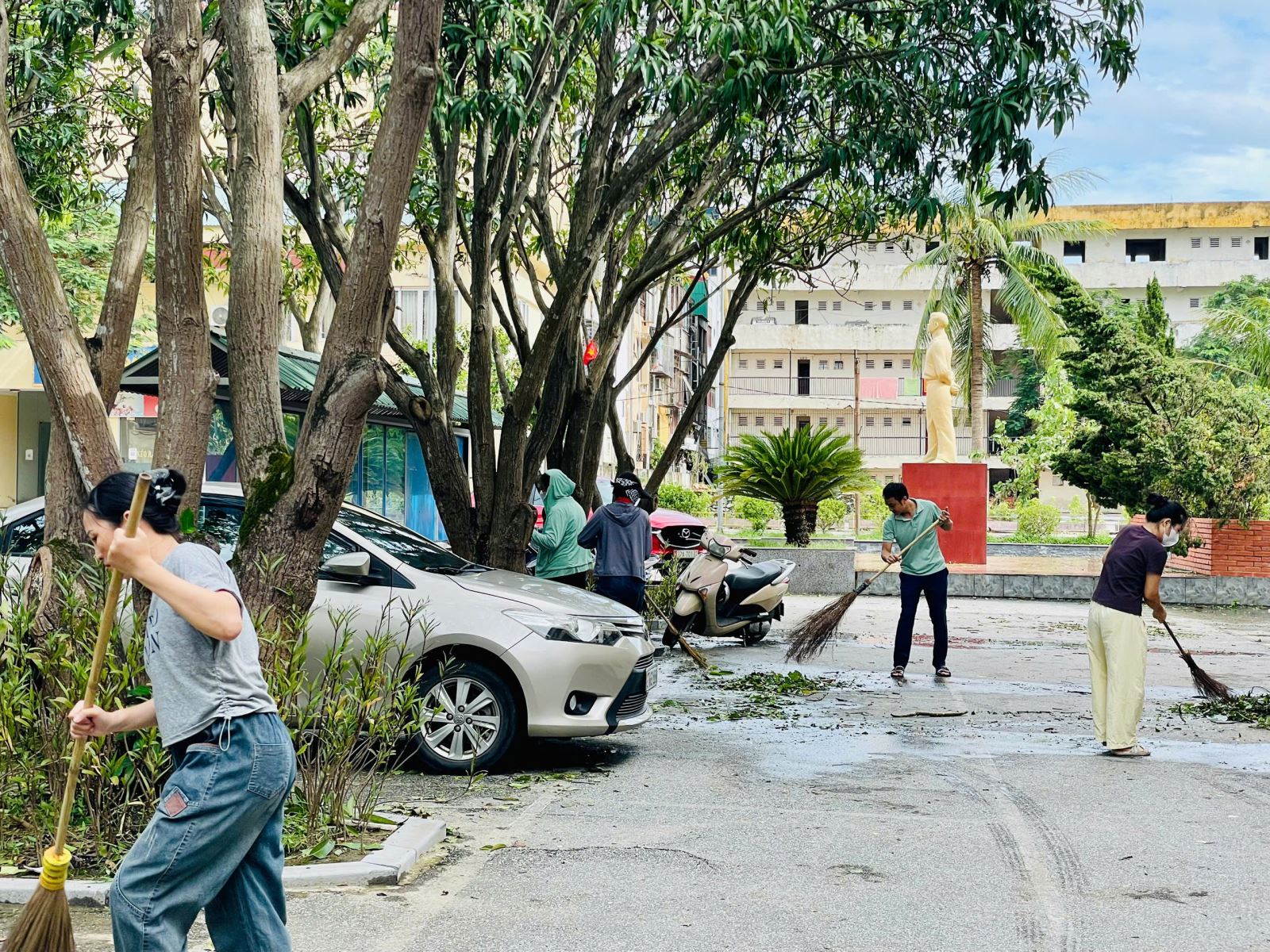 Toàn trường ra quân khắc phục hậu quả của bão số 10 (Bualoi). Ảnh: Trịnh Hường