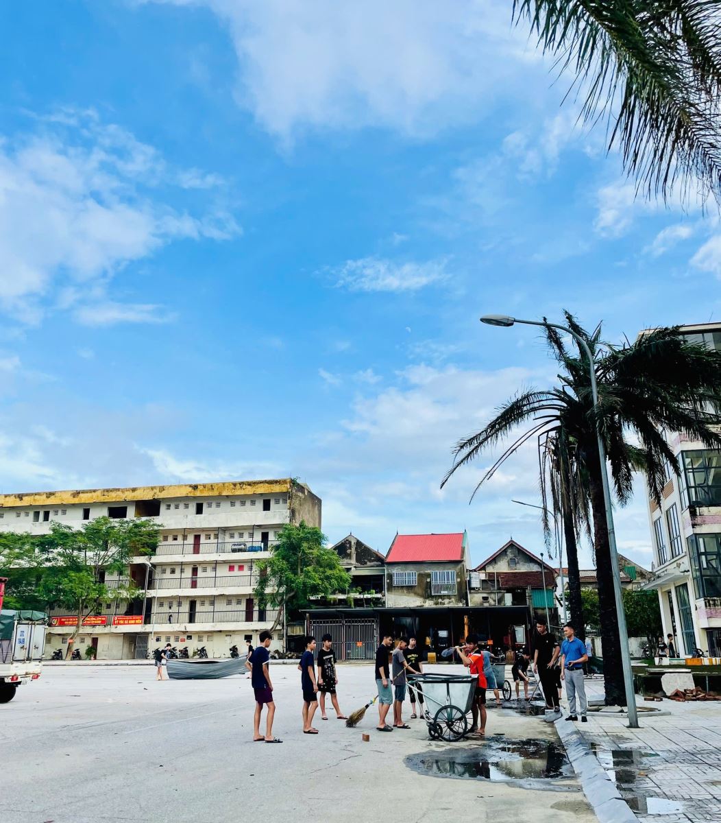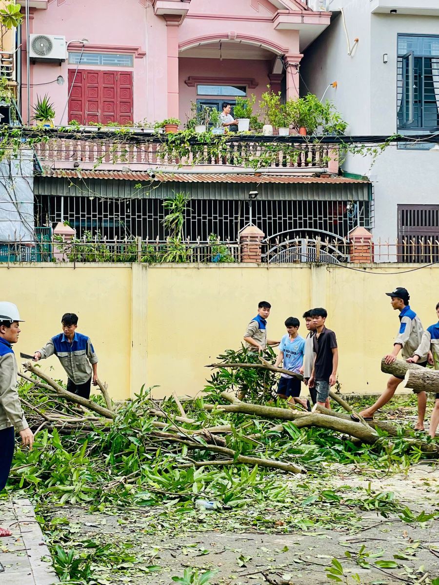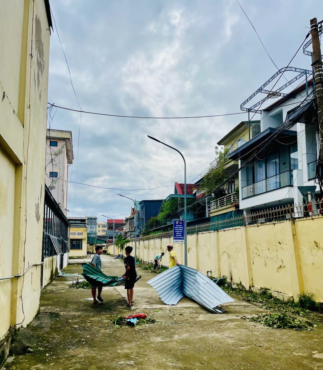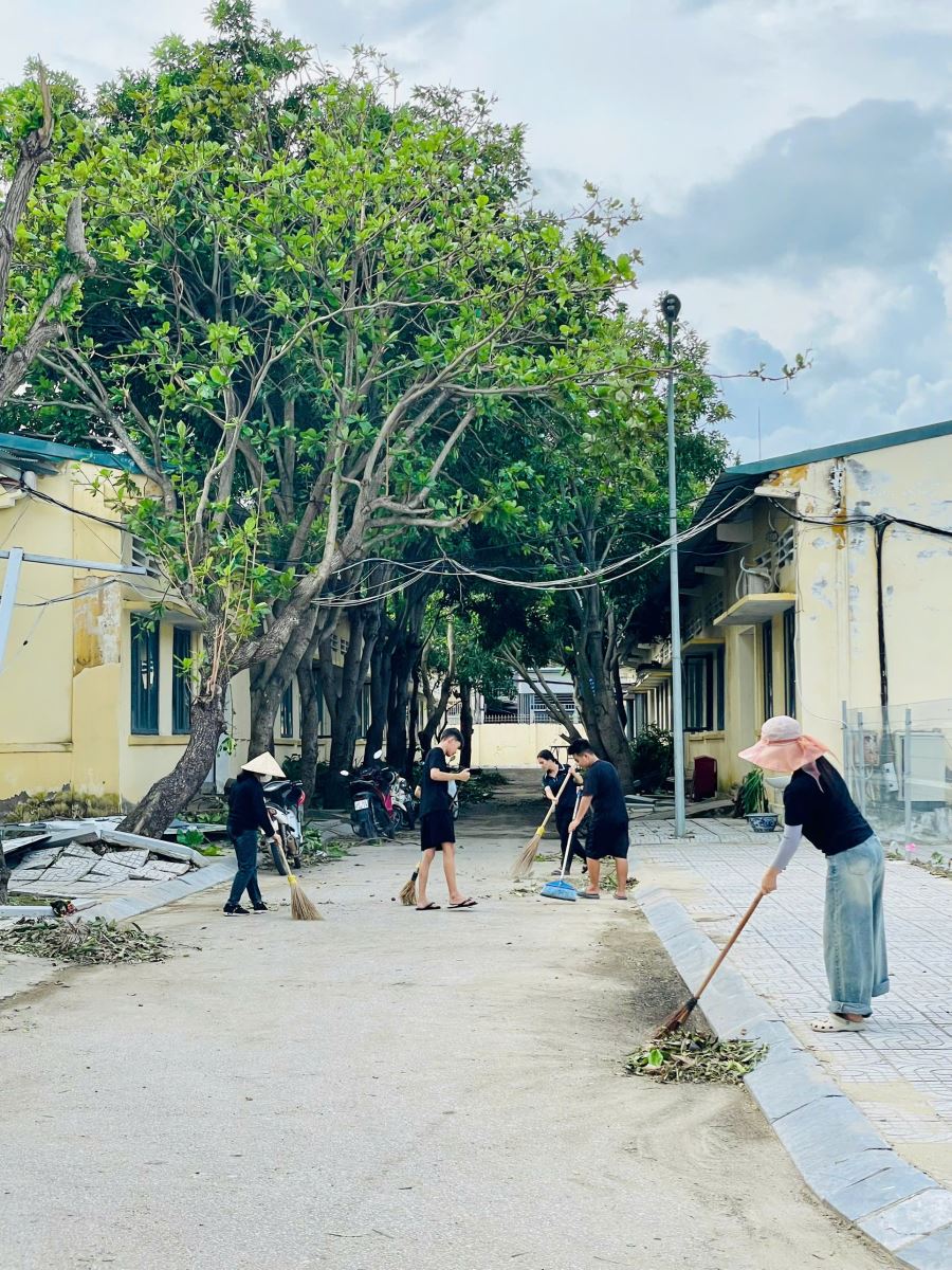 Ngay sau khi bão đi qua, Đảng ủy, Ban Giám hiệu đã nhanh chóng triển khai kế hoạch khắc phục hậu quả. Toàn thể cán bộ, giảng viên, nhân viên cùng học sinh, sinh viên đã đồng loạt ra quân dọn dẹp vệ sinh, thu gom rác, phát quang cây gãy đổ, sắp xếp lại bàn ghế. Các tổ kỹ thuật được huy động để kiểm tra, sửa chữa hệ thống điện – nước, gia cố lại mái che và cửa sổ nhằm đảm bảo an toàn. Công tác này được tiến hành khẩn trương nhằm sớm khôi phục lại môi trường giảng dạy và học tập.