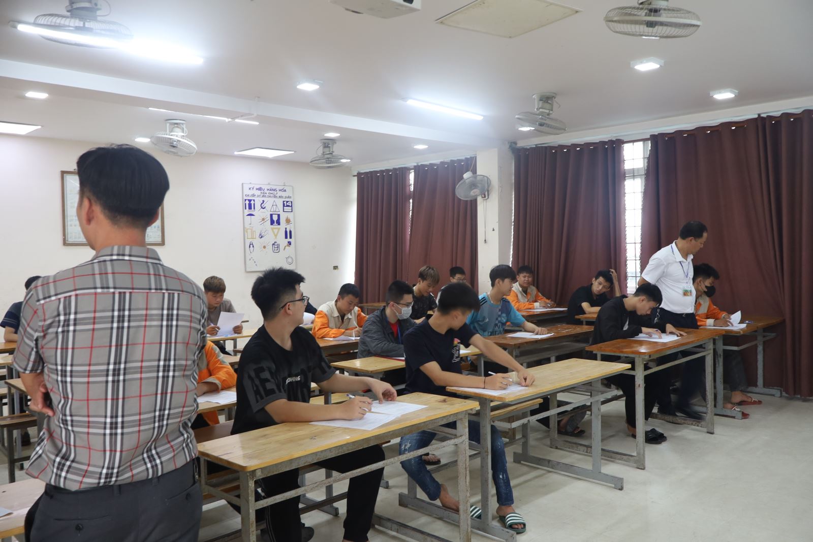 Các thí sinh dự thi môn Lý thuyết tổng hợp nghề. Ảnh: Trịnh Hường
