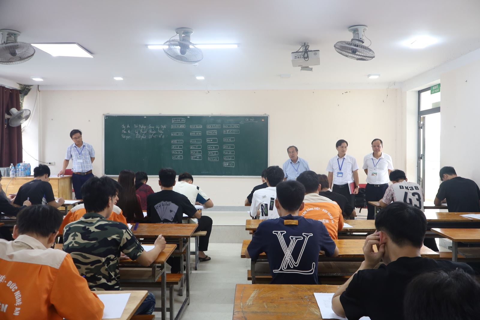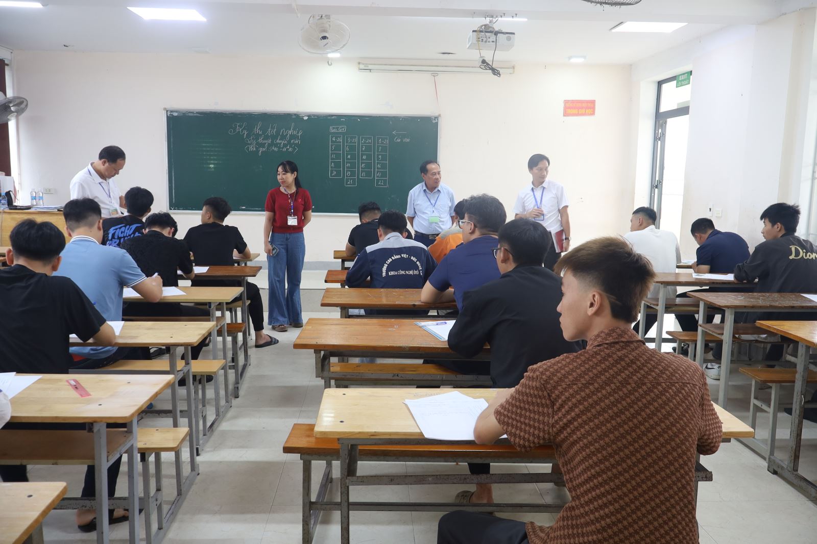 Thực hiện Kế hoạch năm học 2025 – 2026, từ ngày 20/10 đến ngày 22/10/2024, Trường Cao đẳng Việt – Đức Nghệ An tổ chức Kỳ thi tốt nghiệp cho sinh viên Cao đẳng liên thông Khóa 05 các nghề: Công nghệ ô tô, Điện công nghiệp, Điện lạnh, nghề Hàn và Trung cấp Khóa 17 các nghề: Điện Tử công nghiệp, Điện Công nghiệp, Điện lạnh, Công nghệ ô tô, Hàn, Tin học văn phòng, Kỹ thuật sửa chữa lắp ráp máy tính, Vận hành máy TCN và May thời trang. ThS. Nguyễn Hữu Hằng – Bí thư Đảng ủy, Hiệu trưởng, Chủ tịch Hội đồng thi Tốt nghiệp điều hành Kỳ thi.