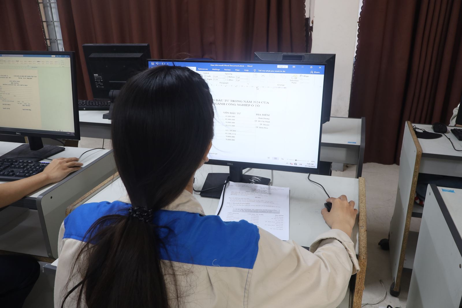 Các thí sinh dự thi thực hành nghề Tin học văn phòng. Ảnh: Trịnh Hường