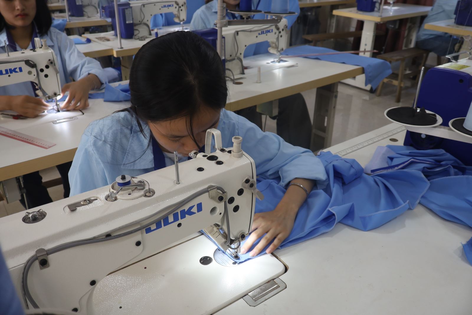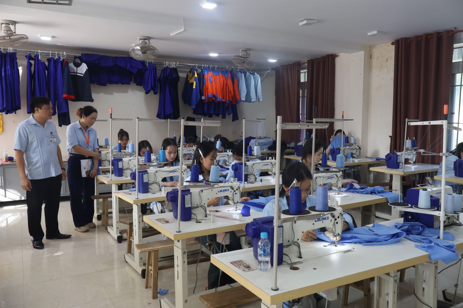 Các thí sinh dự thi thực hành nghề May thời trang. Ảnh: Trịnh Hường