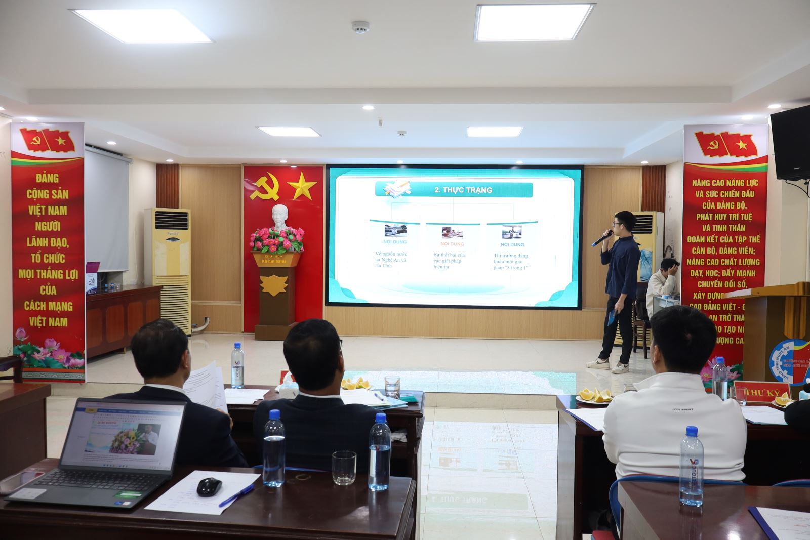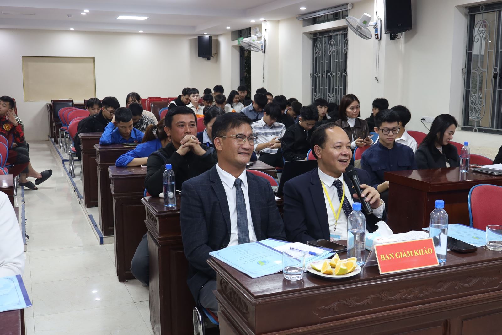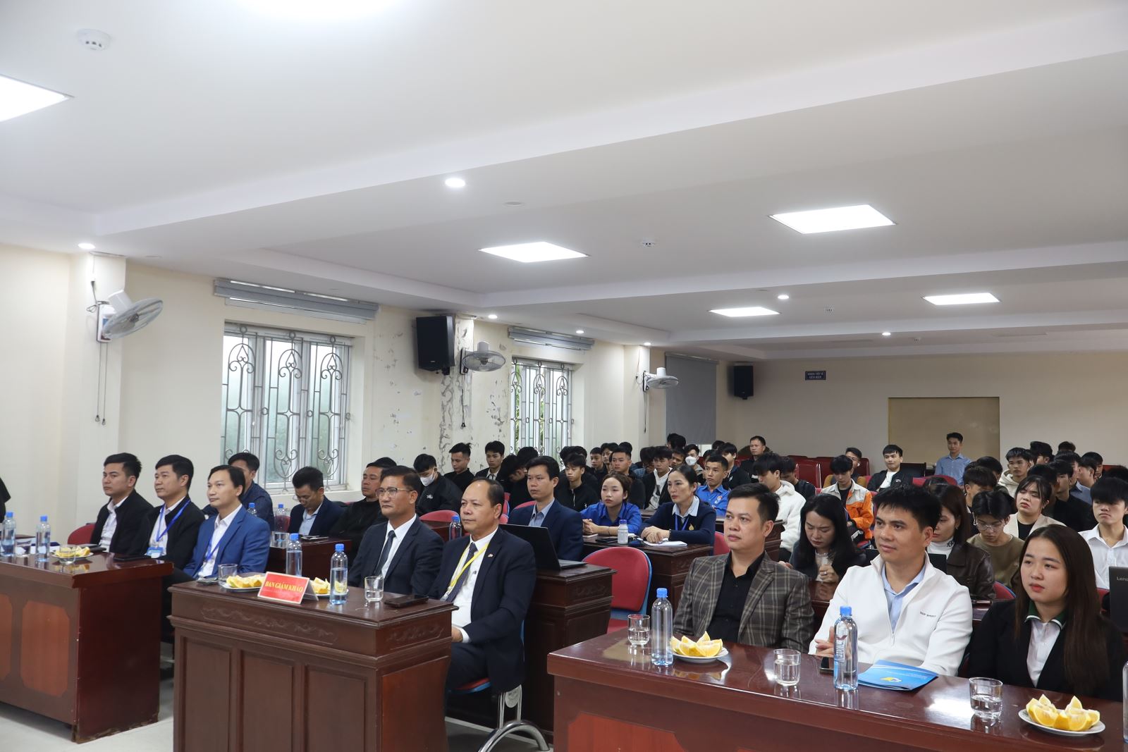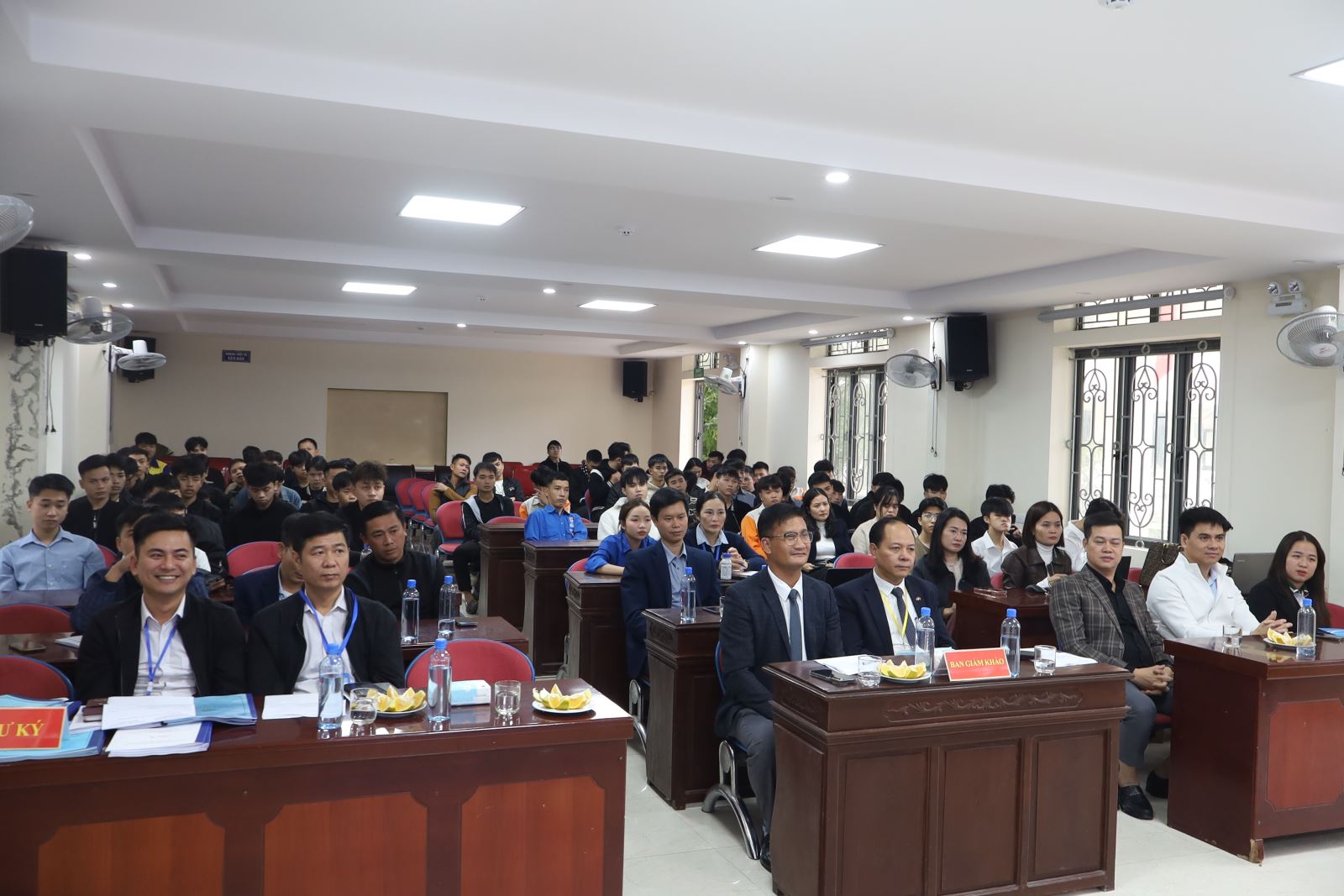 Về dự vòng Bán kết có ThS. Cao Anh Tuấn – Phó Hiệu trưởng, Chủ tịch Công đoàn trường; đại diện lãnh đạo Công ty New World, Công ty Hương Việt; đại diện lãnh đạo các phòng, khoa cùng các thầy giáo, cô giáo trong Ban Tổ chức; Ban Giám khảo; Ban Cố vấn; thành viên Câu lạc bộ Khởi nghiệp đổi mới sáng tạo và các tác giả các nhóm dự án.