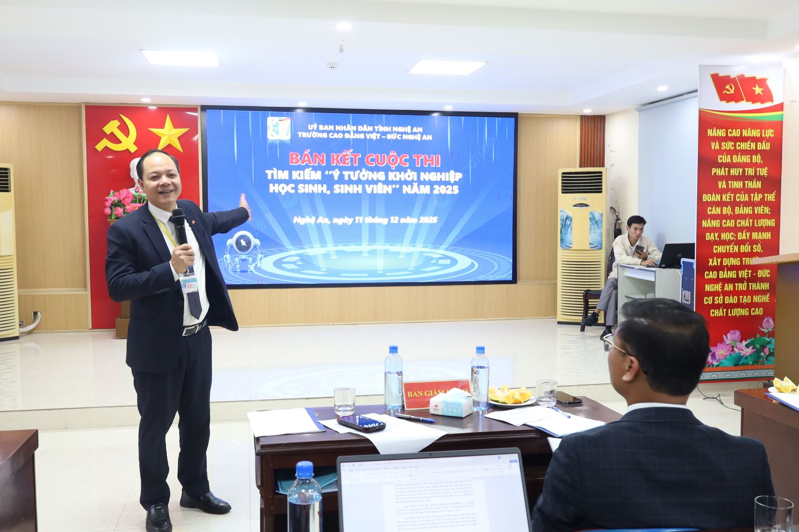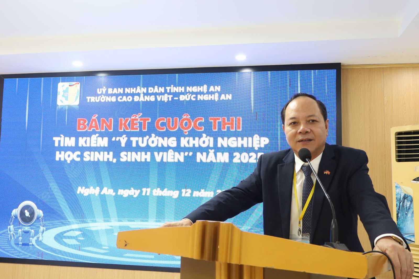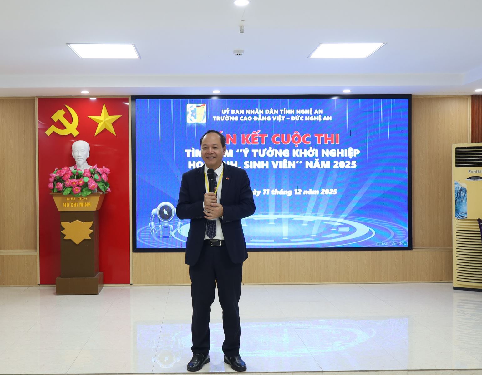 Phát biểu Khai mạc Cuộc thi, ThS. Cao Anh Tuấn – Phó Hiệu trưởng, Chủ tịch Công đoàn trường nhấn mạnh: Khởi nghiệp đổi mới sáng tạo không chỉ là xu hướng tất yếu trong bối cảnh hội nhập mà còn là cơ hội để học sinh, sinh viên rèn luyện tư duy, bản lĩnh và kỹ năng nghề nghiệp. Nhà trường luôn tạo điều kiện, đồng hành và hỗ trợ các ý tưởng tiềm năng phát triển thành dự án thực tế, góp phần hiện thực hóa ước mơ lập thân, lập nghiệp của tuổi trẻ Cao đẳng Việt – Đức Nghệ An.