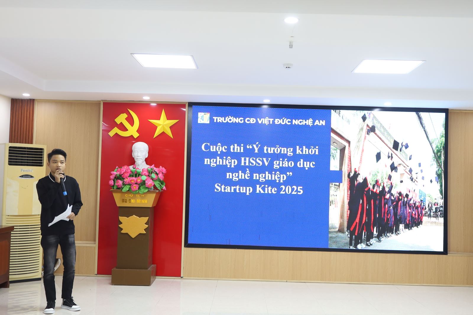 Hướng tới mục tiêu khơi dậy tinh thần sáng tạo, thúc đẩy ý tưởng khởi nghiệp trong học sinh, sinh viên; chiều ngày 11/12/2025, Câu lạc bộ Khởi nghiệp Đổi mới sáng tạo Trường Cao đẳng Việt – Đức Nghệ An đã tổ chức Vòng Bán kết Cuộc thi Khởi nghiệp Đổi mới sáng tạo – Startup Kite 2025 với sự tham gia của đông đảo học sinh, sinh viên và giảng viên trong toàn trường.