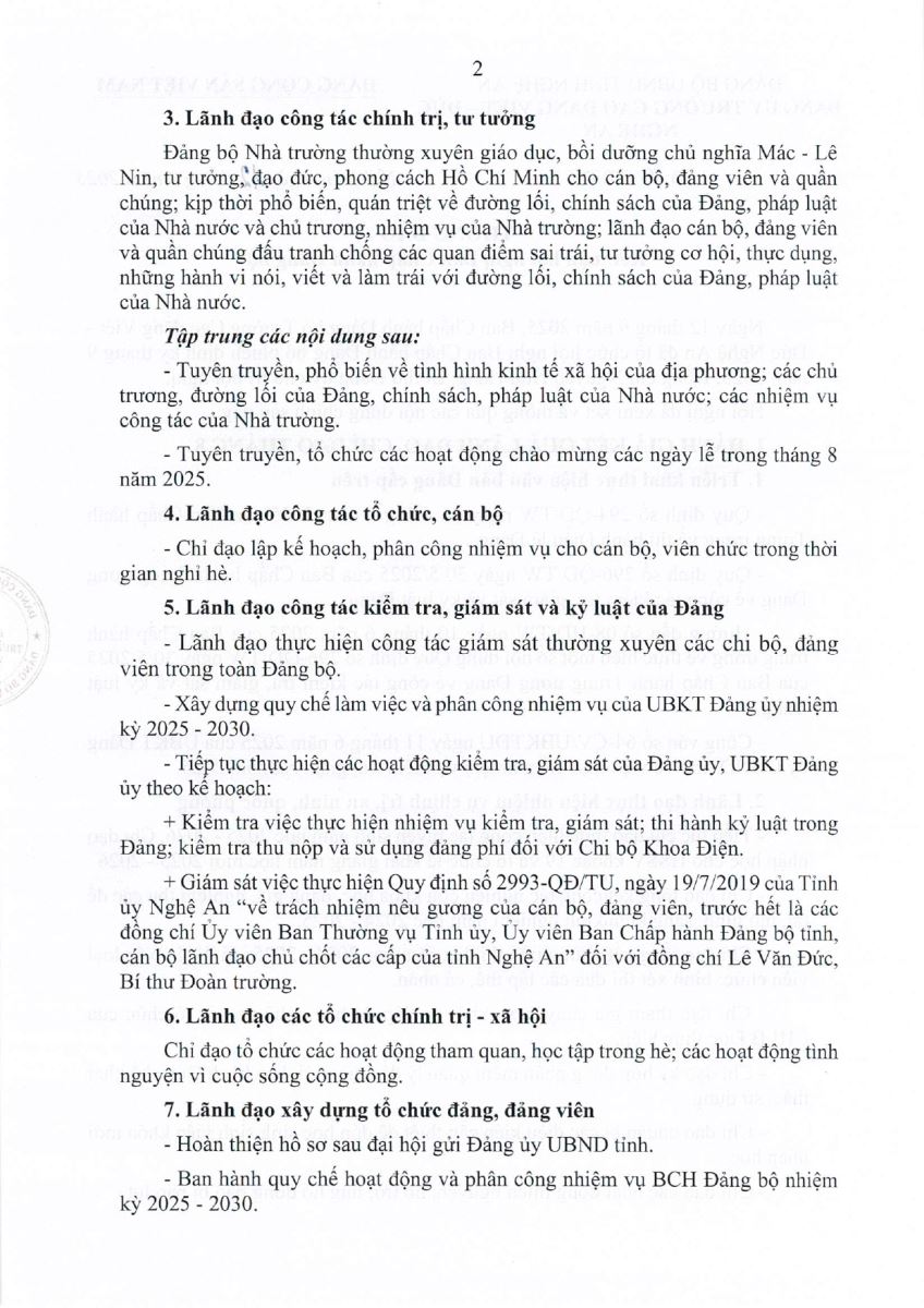 Thông báo Kết luận Hội nghị Ban Chấp hành Đảng bộ Trường Cao đẳng Việt - Đức Nghệ An, phiên định kỳ tháng 06 năm 2025