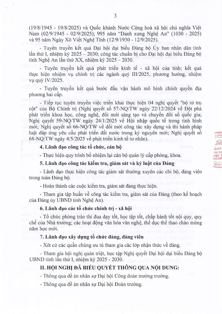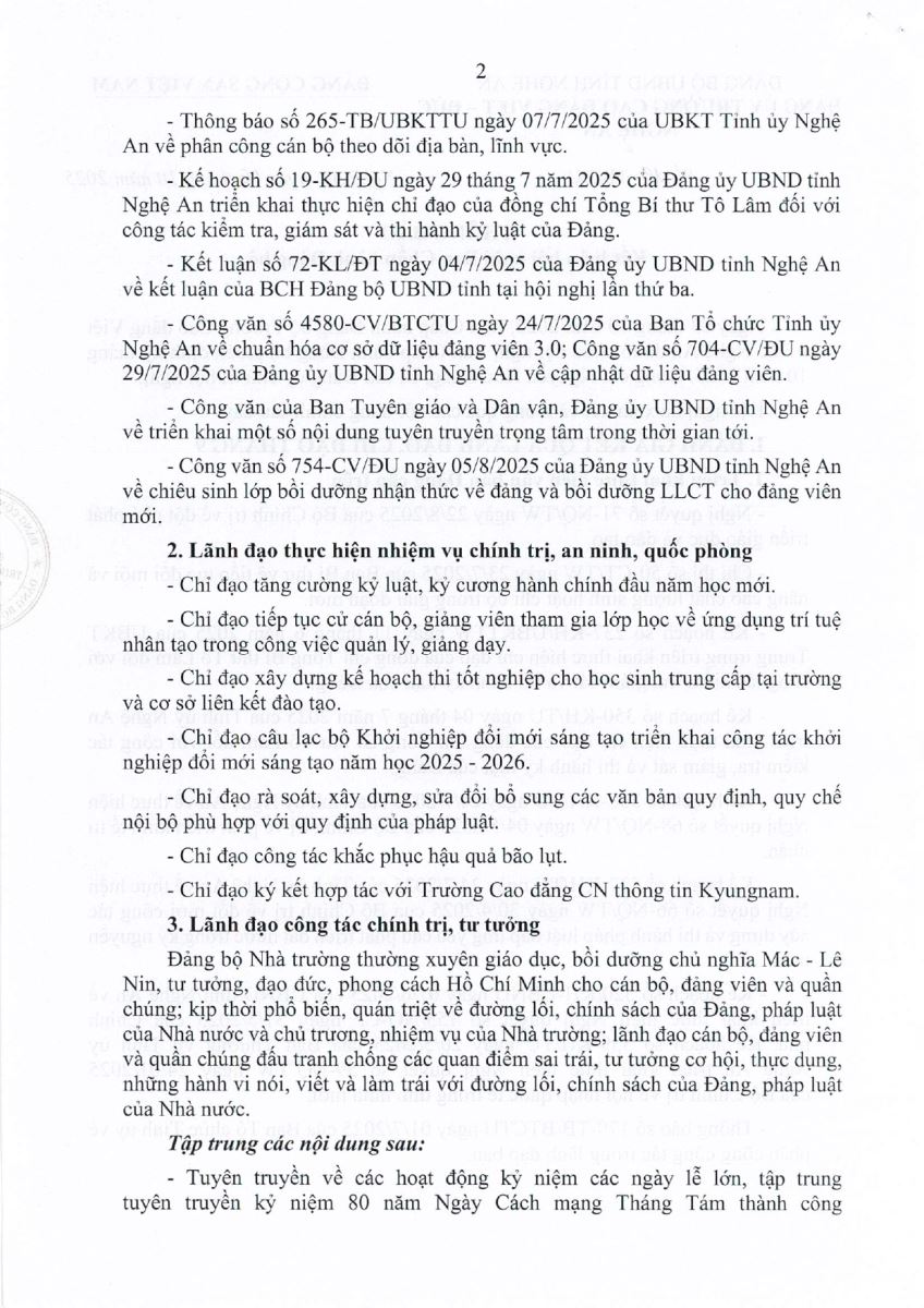 Thông báo Kết luận Hội nghị Ban Chấp hành Đảng bộ Trường Cao đẳng Việt - Đức Nghệ An, phiên định kỳ tháng 9 năm 2025