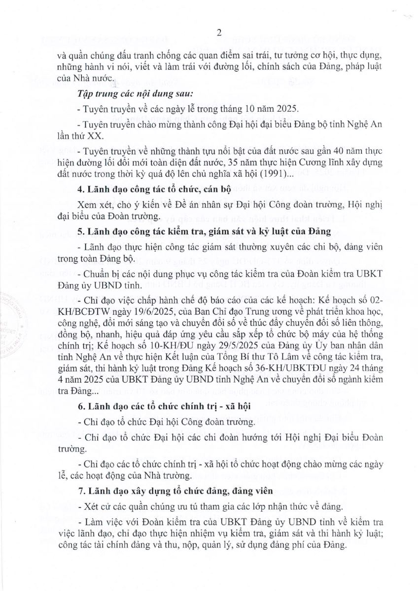 Thông báo Kết luận Hội nghị Ban Chấp hành Đảng bộ Trường Cao đẳng Việt - Đức Nghệ An, phiên định kỳ tháng 10 năm 2025