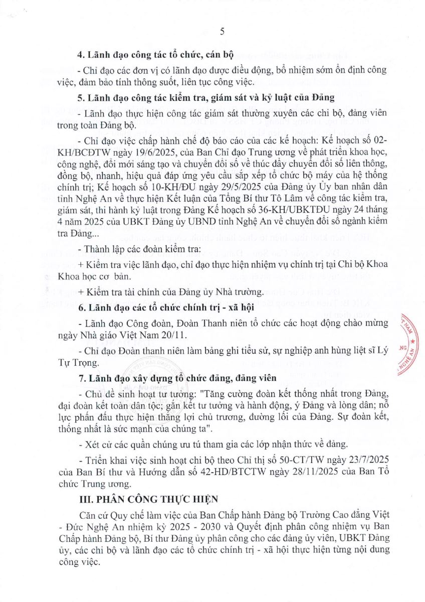 Thông báo Kết luận Hội nghị Ban Chấp hành Đảng bộ Trường Cao đẳng Việt - Đức Nghệ An, phiên định kỳ tháng 11 năm 2025
