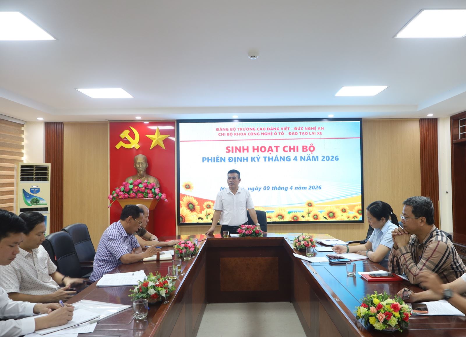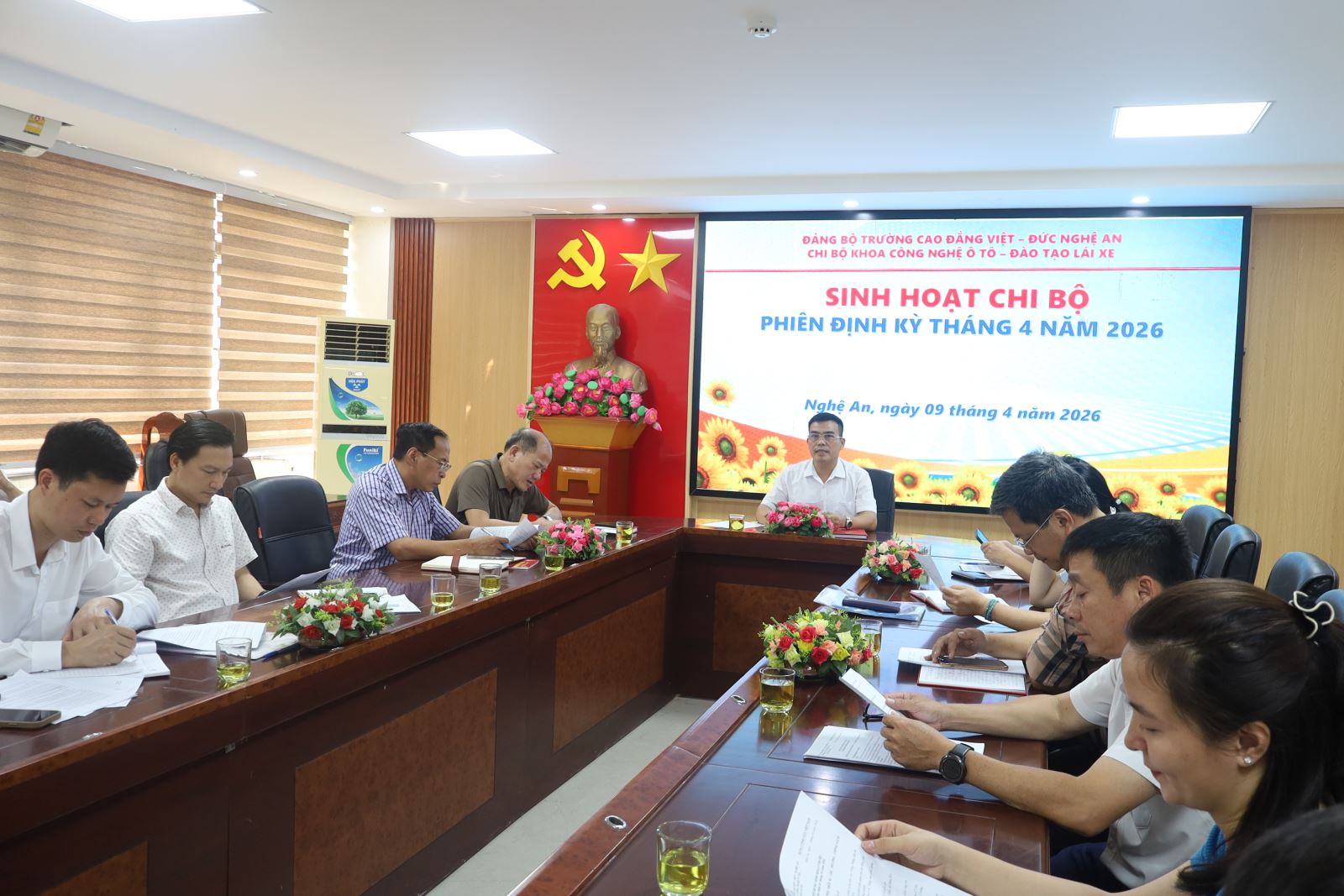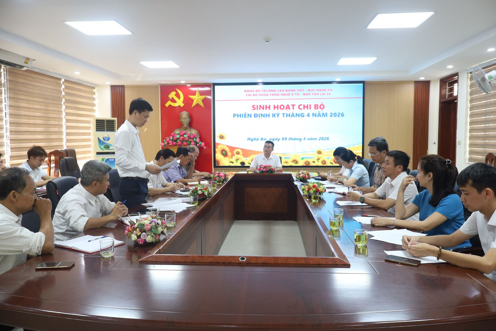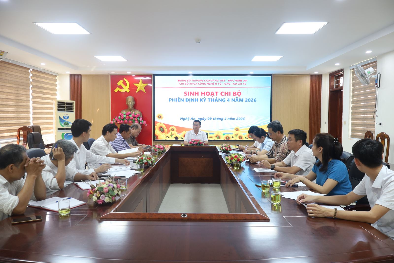 Thực hiện chương trình công tác Đảng năm 2026, chiều ngày 9/4/2026, Chi bộ Khoa Công nghệ ô tô – Đào tạo lái xe – trực thuộc Đảng bộ Trường Cao đẳng Việt – Đức Nghệ An đã tổ chức sinh hoạt chi bộ phiên định kỳ tháng 4 dưới sự chủ trì của đồng chí Nguyễn Cao Sơn – Bí thư Chi bộ, Trưởng khoa Công nghệ ô tô. Về dự buổi sinh hoạt có đồng chí Phạm Tuấn Vinh - Ủy viên Ban Chấp hành Đảng bộ tỉnh, Phó Bí thư Đảng ủy UBND tỉnh; đồng chí Nguyễn Hữu Hằng – Bí thư Đảng ủy, Hiệu trưởng cùng các đồng chí trong Đảng ủy và toàn thể đảng viên trong chi bộ.