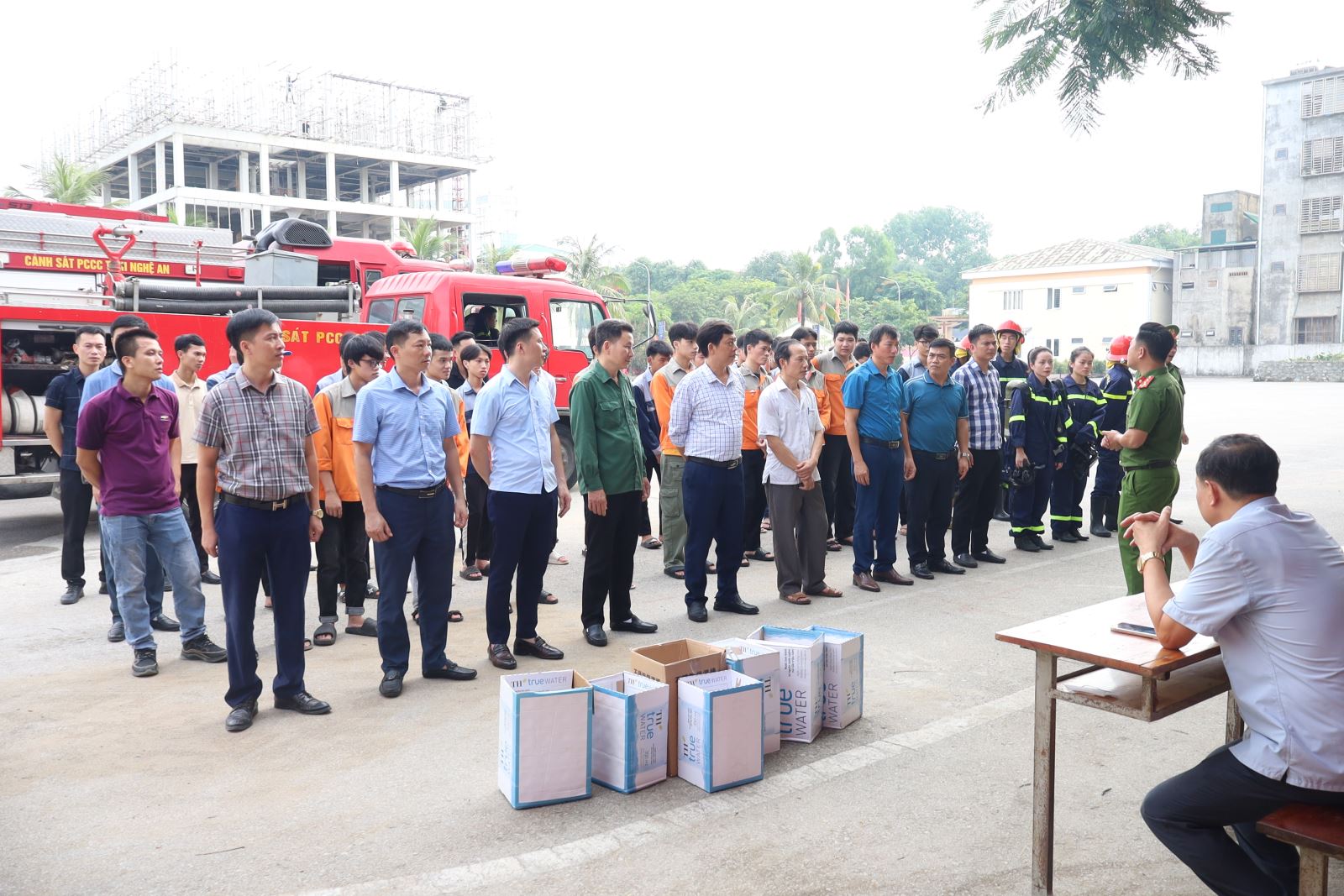 Báo cáo tổng kết buổi tập huấn nghiệp vụ phòng cháy chữa cháy, cứu nạn cứu hộ và Thực tập phương án chữa cháy, cứu nạn cứu hộ tại Trường Cao đẳng Việt - Đức Nghệ An. Ảnh: Trịnh Hường