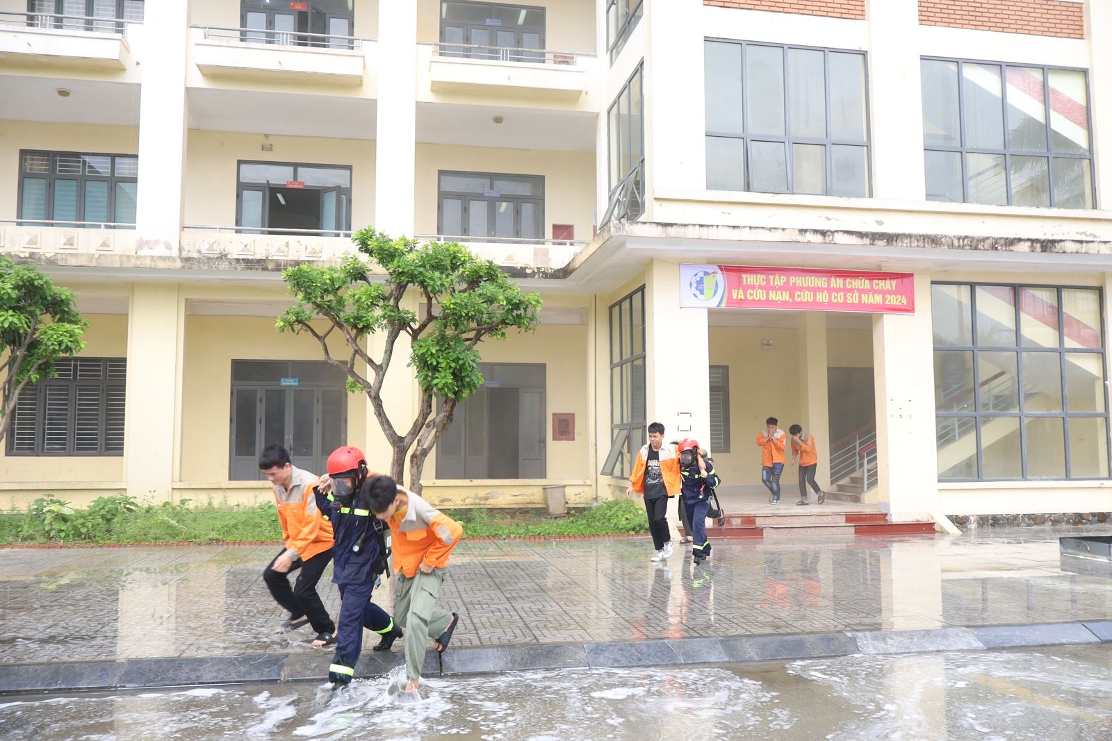 Thực tập phương án chữa cháy và cứu nạn cứu hộ tại Nhà trường. Ảnh: Trịnh Hường