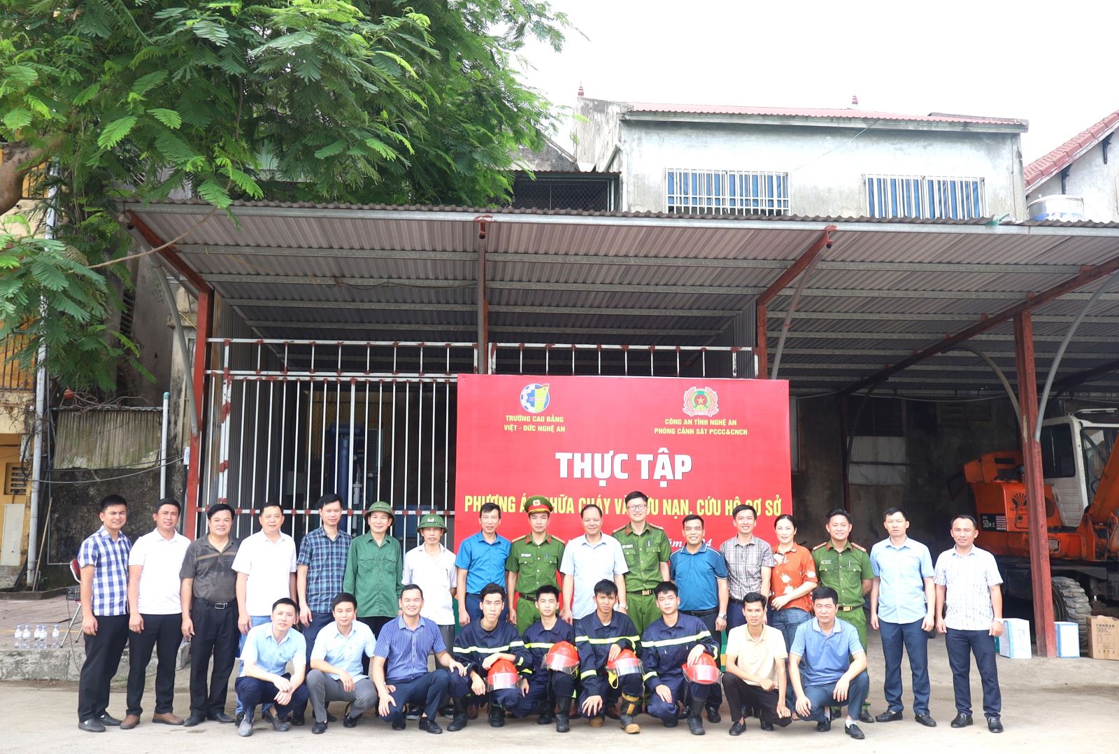 Nhằm thực hiện tốt công tác phòng cháy chữa cháy và nâng cao ý thức, vai trò, trách nhiệm, nghiệp vụ cho lực lượng phòng cháy chữa cháy và cứu nạn cứu hộ cơ sở, cán bộ, giảng viên, nhân viên, học sinh, sinh viên. Sáng ngày 7/6/2024, Trường Cao đẳng Việt – Đức Nghệ An phối hợp với Phòng Cảnh sát Phòng cháy chữa cháy và cứu nạn cứu hộ trên sông - Công an tỉnh Nghệ An tổ chức tập huấn nghiệp vụ phòng cháy chữa cháy, cứu nạn cứu hộ và thực tập phương án chữa cháy tại Nhà trường. Tham dự buổi tập huấn có ThS. Cao Anh Tuấn – Phó Hiệu trưởng, Chủ tịch Công đoàn trường; các đồng chí trưởng, phó các phòng khoa, đoàn thể; Đại úy Lê Quốc Phúc – Đội trưởng đội Cảnh sát Phòng cháy chữa cháy và cứu nạn cứu hộ trên sông; Thiếu tá Đậu Khắc Hà – Phó Đội trưởng đội Cảnh sát Phòng cháy chữa cháy và cứu nạn cứu hộ trên sông; Đại úy Bùi Văn Trung – cán bộ Đội Cảnh sát Phòng cháy chữa cháy và cứu nạn cứu hộ trên sông cùng các cán bộ chiến sĩ đội Cảnh sát Phòng cháy chữa cháy và cứu nạn cứu hộ trên sông và đội phòng cháy chữa cháy, cứu nạn cứu hộ cơ sở, cán bộ, giảng viên, nhân viên, học sinh, sinh viên được điều động.