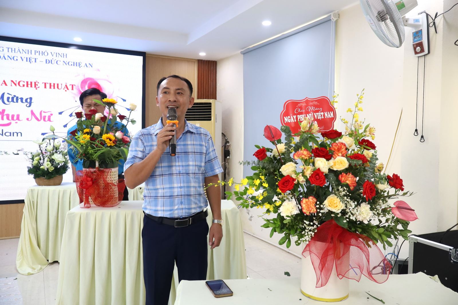 Tham dự chương trình có đồng chí Trần Thị Lệ Thi – Phó Chủ tịch Liên đoàn Lao động Thành phố Vinh; ThS. Nguyễn Hữu Hằng – Bí thư Đảng ủy, Chủ tịch Hội đồng trường, Hiệu trưởng; ThS. Cao Anh Tuấn – Phó Hiệu trưởng, Chủ tịch Công đoàn trường; các đồng chí trong Đảng ủy, Ban Giám hiệu, Ban Chấp hành Công đoàn cùng toàn thể cán bộ, viên chức, người lao động phụ nữ trong toàn trường.