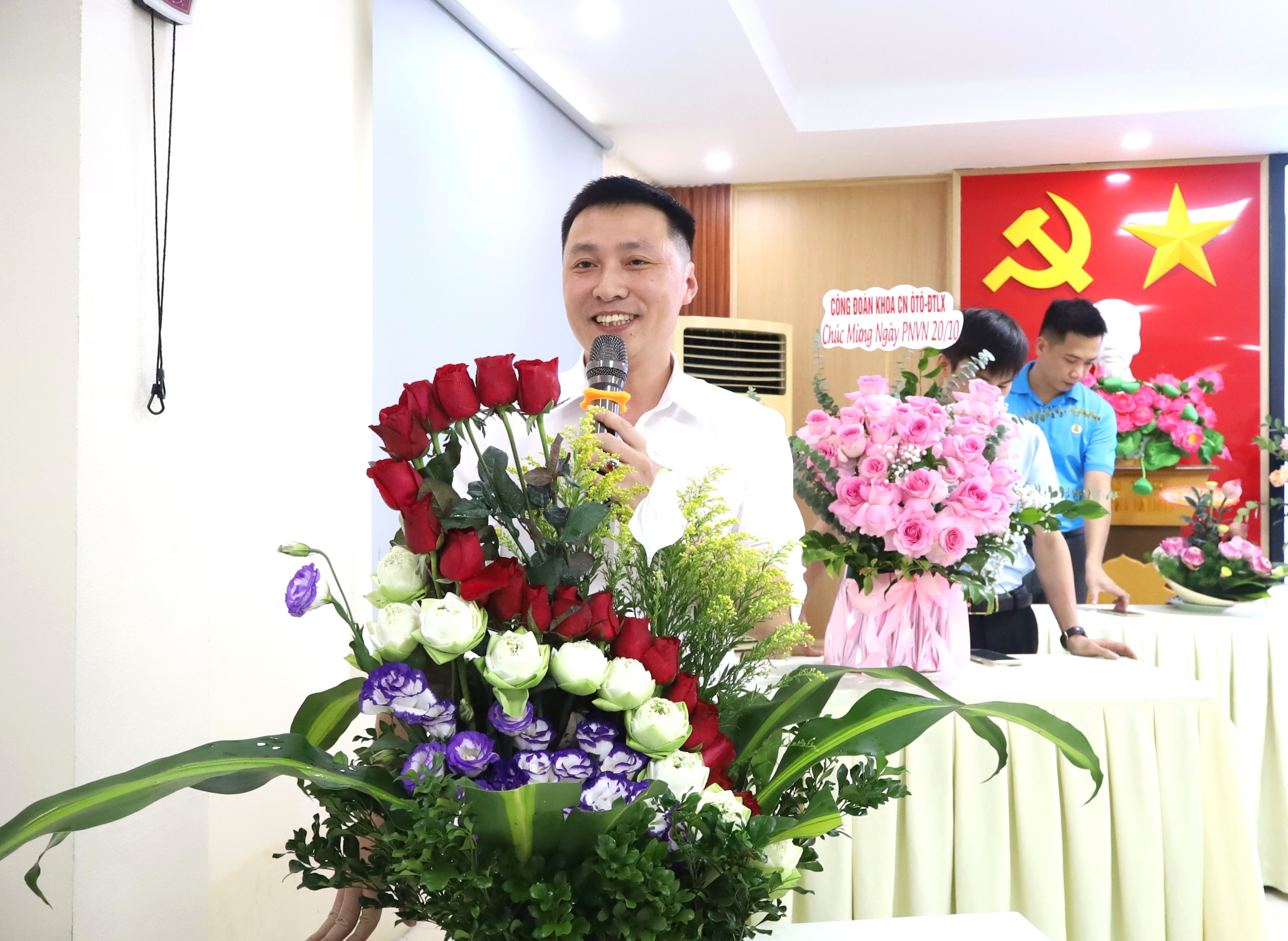 Phát biểu tại buổi Tọa đàm, ThS. Cao Anh Tuấn – Phó Hiệu trưởng, Chủ tịch Công đoàn trường đã ôn lại truyền thống của Ngày Phụ nữ Việt Nam 20/10. Trong đó, đồng chí cũng khẳng định, các nữ cán bộ, giảng viên, nhân viên Nhà trường đã luôn phấn đấu rèn luyện, cống hiến tài năng, trí tuệ, đóng góp quan trọng cho sự nghiệp phát triển của Nhà trường; nhiều đồng chí nữ được các cấp khen thưởng đã có thành tích trong công tác, trong phong trào phụ nữ. Đồng chí cũng gửi lời chúc mừng tốt đẹp nhất đến một nửa thế giới nói chung và các nữ cán bộ, giảng viên, nhân viên Trường Cao đẳng Việt – Đức Nghệ An nói riêng. Khẳng định vai trò, trách nhiệm to lớn của người phụ nữ trong thời kỳ đổi mới, đồng chí Phó Hiệu trưởng vui mừng trước những thành tích mà các đồng chí nữ đã đạt được và mong rằng trong thời gian tới, các chị em sẽ có nhiều đóng góp hơn nữa cho sự phát triển và lớn mạnh của Nhà trường; giữ vững tinh thần đoàn kết, phát huy truyền thống “Bà Trưng – Bà Triệu”, cống hiến hết mình cho sự nghiệp trồng người, luôn xứng đáng với danh hiệu cao quý “Phụ nữ Việt Nam anh hùng, bất khuất, trung hậu, đảm đang”.