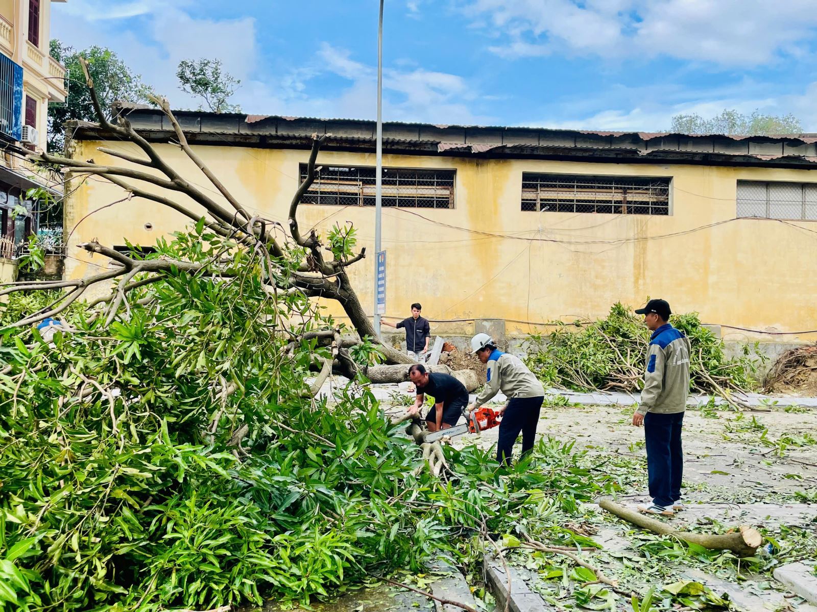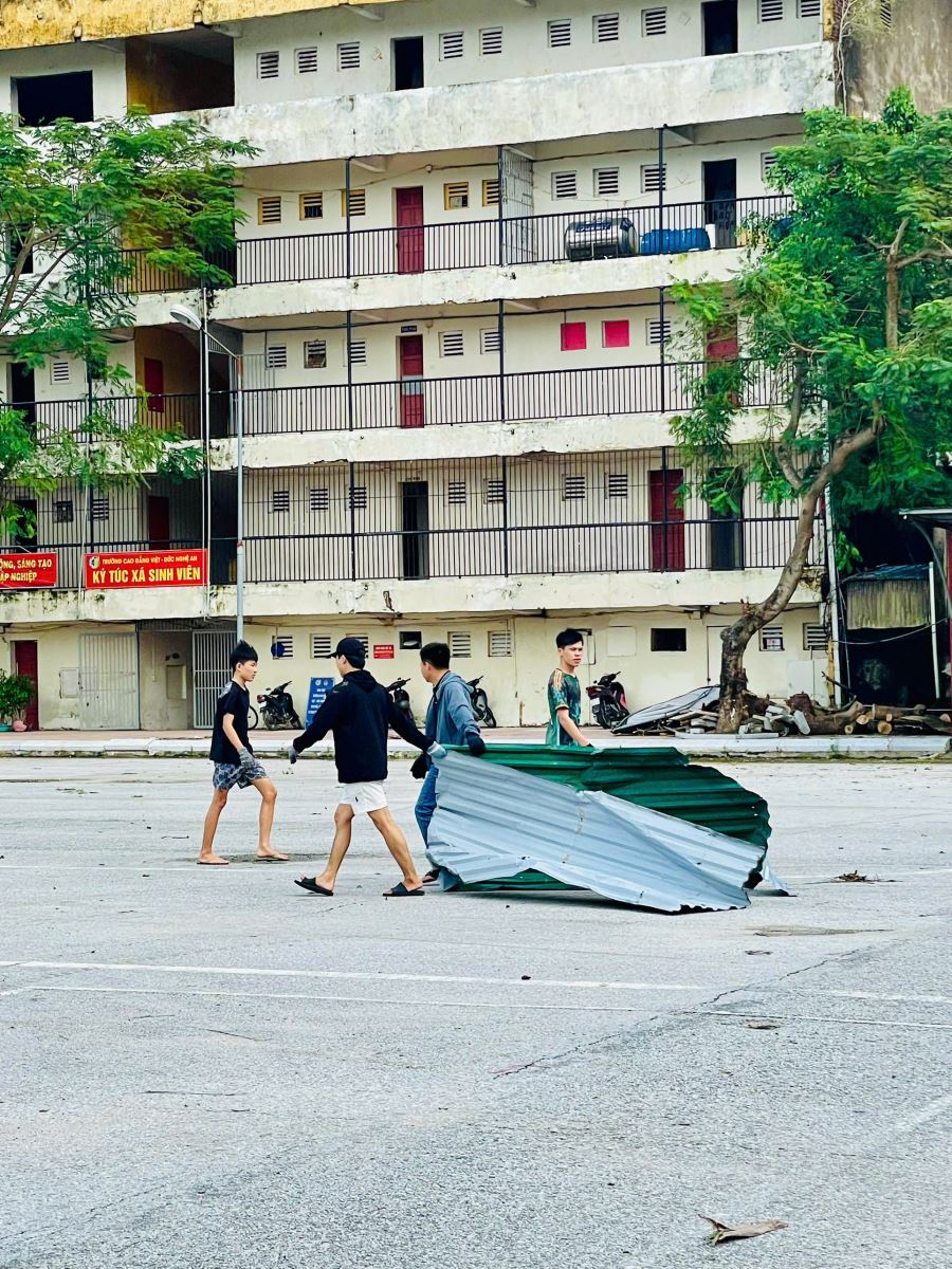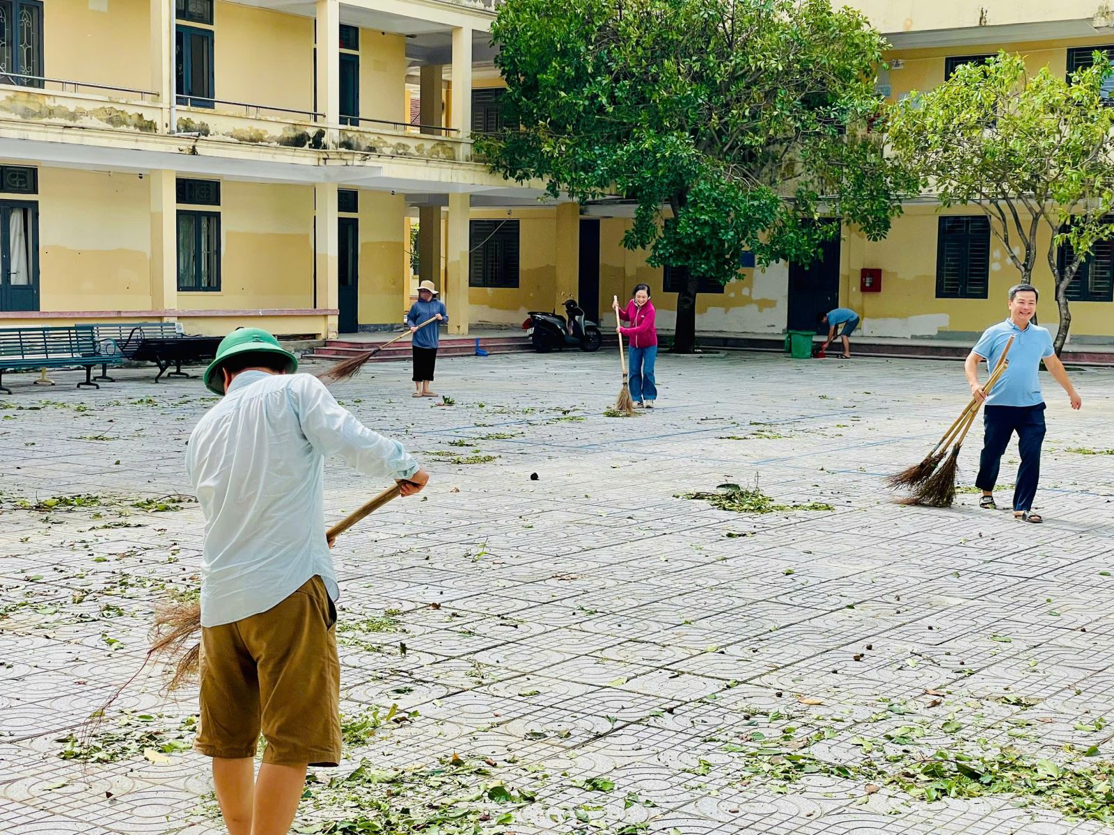 Ngay sau khi bão đi qua, Đảng ủy, Ban Giám hiệu đã nhanh chóng triển khai kế hoạch khắc phục hậu quả. Toàn thể cán bộ, giảng viên, nhân viên cùng học sinh, sinh viên đã đồng loạt ra quân dọn dẹp vệ sinh, thu gom rác, phát quang cây gãy đổ, sắp xếp lại bàn ghế. Các tổ kỹ thuật được huy động để kiểm tra, sửa chữa hệ thống điện – nước, gia cố lại mái che và cửa sổ nhằm đảm bảo an toàn. Công tác này được tiến hành khẩn trương nhằm sớm khôi phục lại môi trường giảng dạy và học tập.