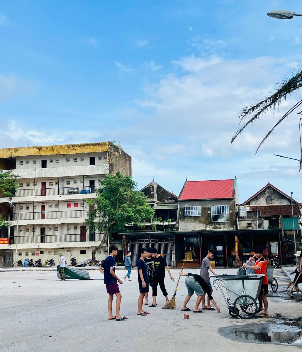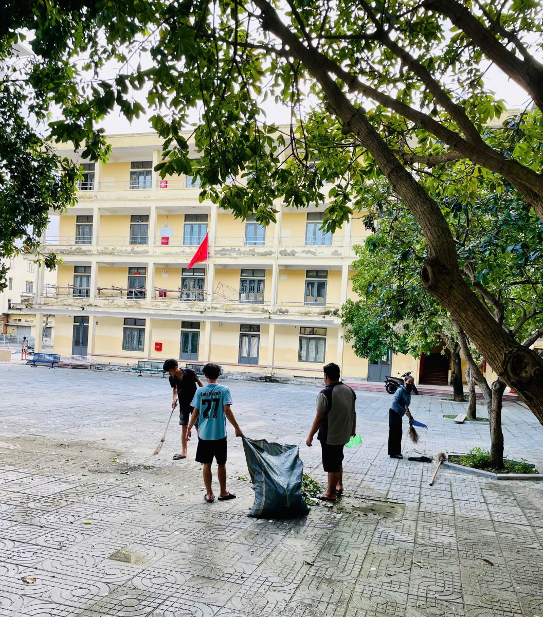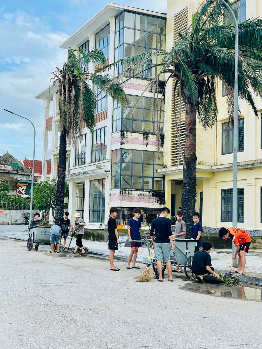 Toàn trường ra quân khắc phục hậu quả của bão số 10 (Bualoi). Ảnh: Trịnh Hường