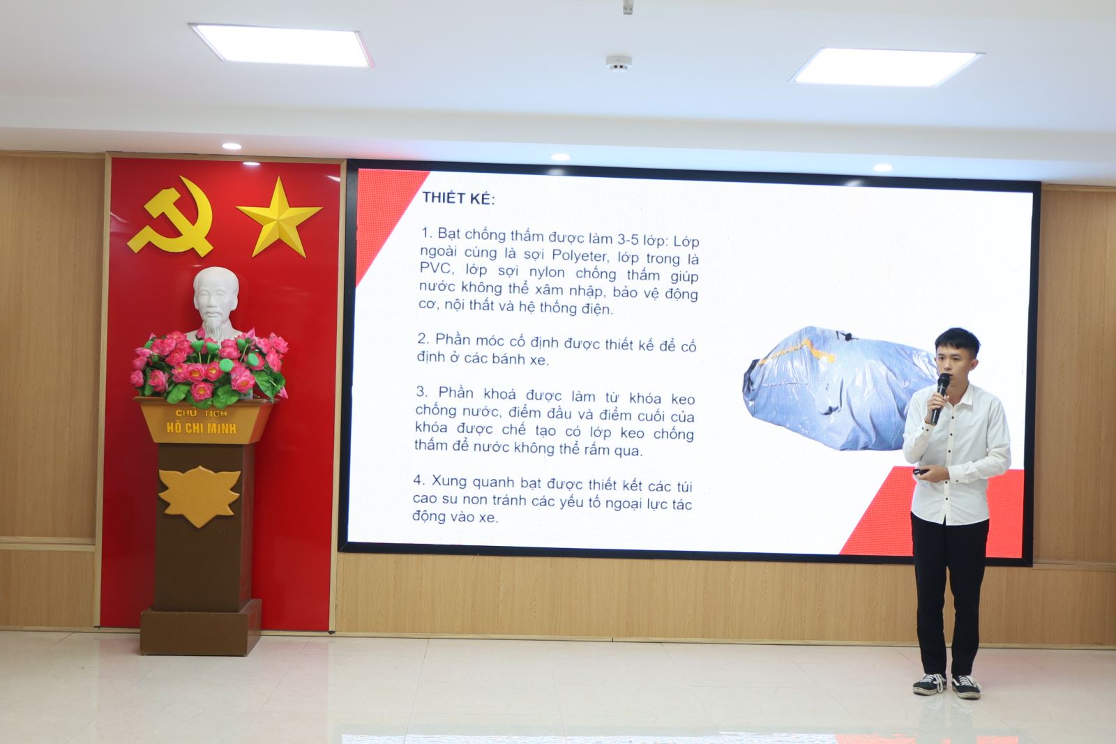 4. Dự án: “Bạt chống ngập ô tô” của nhóm tác giả: Trịnh Văn Nam, Lương Bảo Long, Đậu Trọng Mạnh và giảng viên hướng dẫn Nguyễn Quốc Cường.