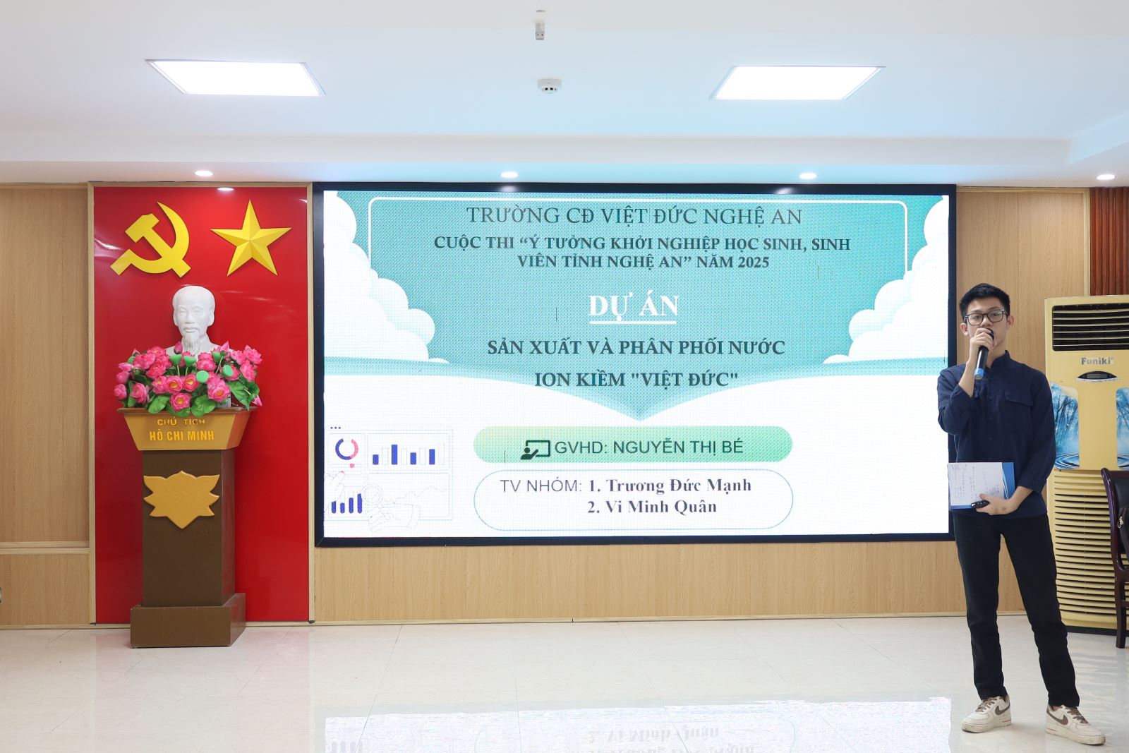 Phát biểu Khai mạc Cuộc thi, ThS. Cao Anh Tuấn – Phó Hiệu trưởng, Chủ tịch Công đoàn trường nhấn mạnh: Khởi nghiệp đổi mới sáng tạo không chỉ là xu hướng tất yếu trong bối cảnh hội nhập mà còn là cơ hội để học sinh, sinh viên rèn luyện tư duy, bản lĩnh và kỹ năng nghề nghiệp. Nhà trường luôn tạo điều kiện, đồng hành và hỗ trợ các ý tưởng tiềm năng phát triển thành dự án thực tế, góp phần hiện thực hóa ước mơ lập thân, lập nghiệp của tuổi trẻ Cao đẳng Việt – Đức Nghệ An.