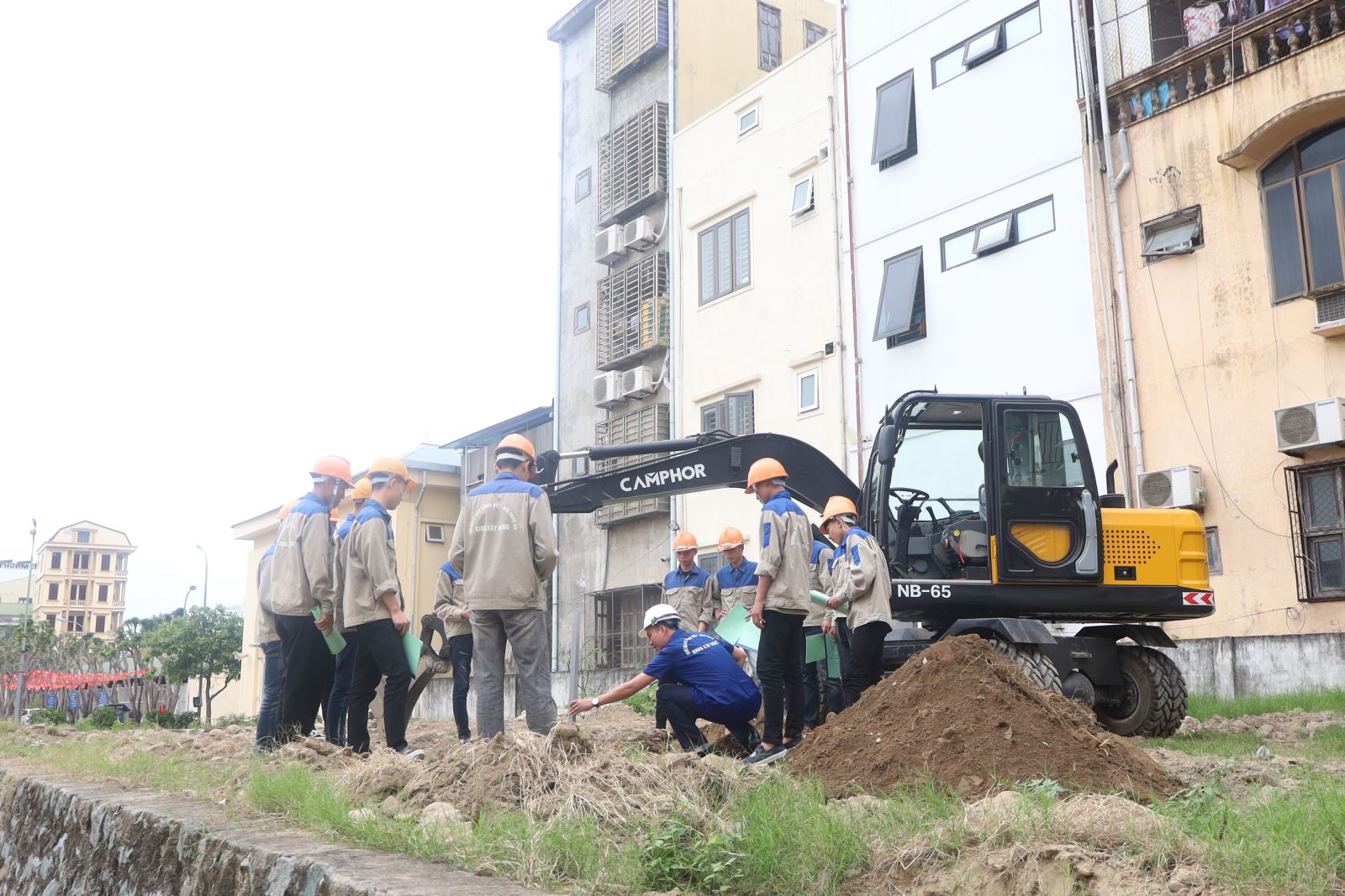 Các thí sinh dự thi Thực hành nghề Vận hành máy Thi công nền. Ảnh: Trịnh Hường