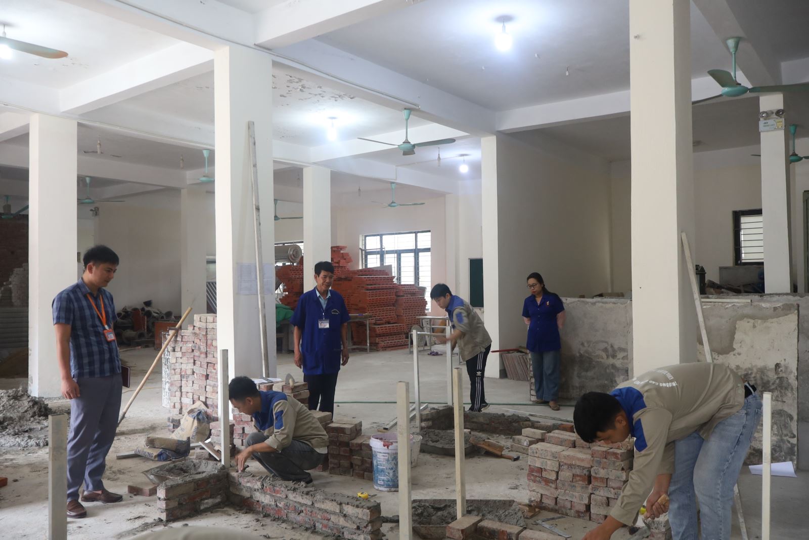 Các thí sinh dự thi Thực hành nghề Kỹ thuật Xây dựng. Ảnh: Trịnh Hường