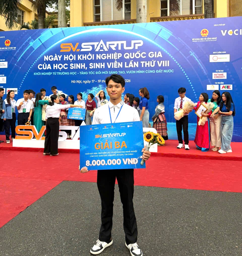 Thực hiện Quyết định số 336/QĐ-TTg của Thủ tướng Chính phủ và Văn bản số 1504/BGDĐT-HSSV về Chương trình “Hỗ trợ học sinh, sinh viên Khởi nghiệp giai đoạn 2026 – 2035” của Bộ Giáo dục và Đào tạo, trong khuôn khổ vòng Chung kết Ngày hội Khởi nghiệp Quốc gia của học sinh, sinh viên lần thứ VIII với chủ đề “Khởi nghiệp từ trường học – Tăng tốc đổi mới sáng tạo, vươn mình cùng đất nước”, đoàn Câu lạc bộ Khởi nghiệp Trường Cao đẳng Việt – Đức Nghệ An do ThS. Cao Anh Tuấn – Phó Hiệu trưởng, Chủ tịch Công đoàn trường làm Trưởng đoàn cùng các thầy giáo, cô giáo và thành viên các dự án xuất sắc đạt giải Ba, ghi dấu ấn nổi bật trong sân chơi trí tuệ quy mô toàn quốc, gồm có: