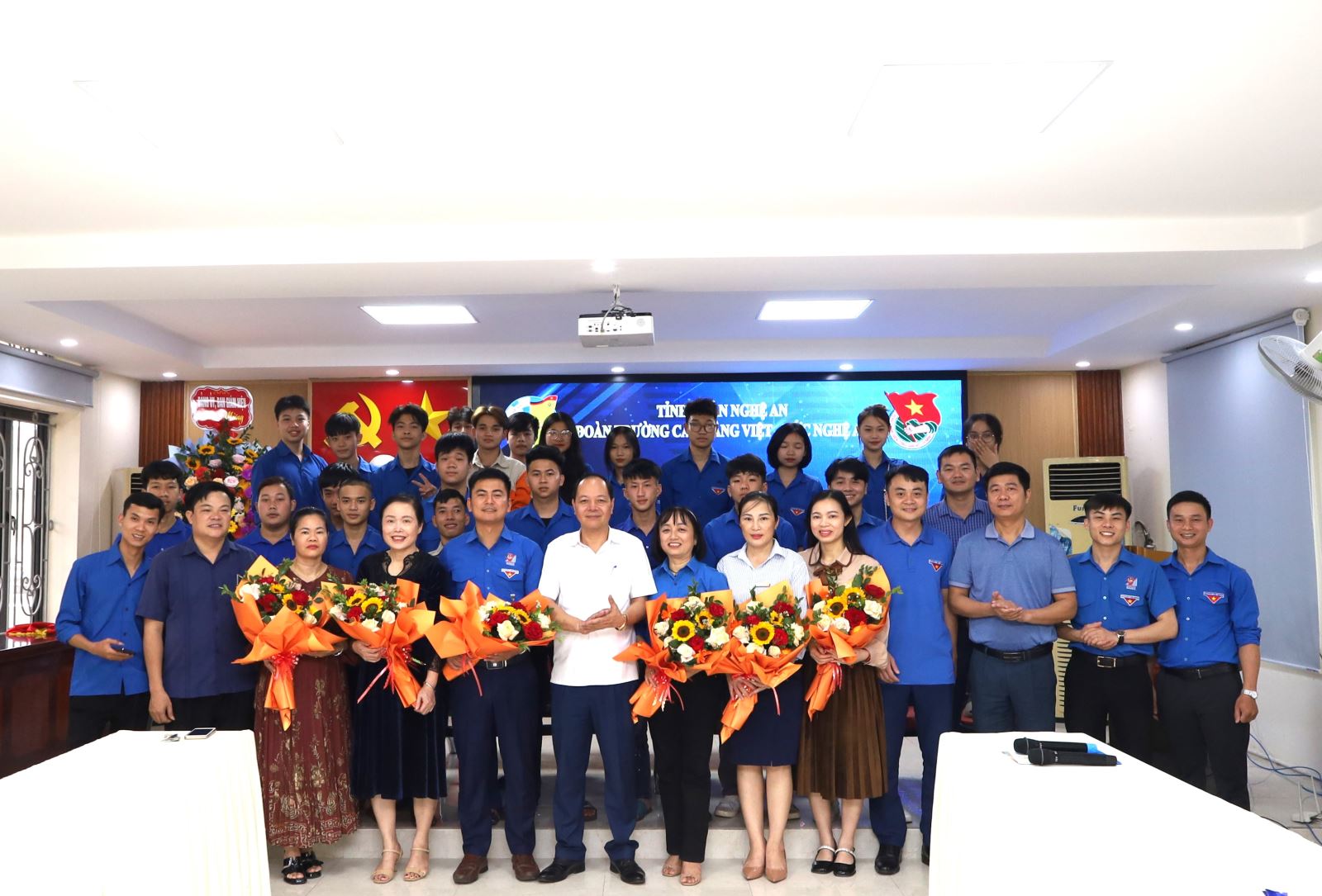 Ban Chấp hành Đoàn trường tặng hoa chúc mừng nguyên Bí thư, Phó Bí thư Đoàn trường qua các thời kỳ. Ảnh: Trịnh Hường