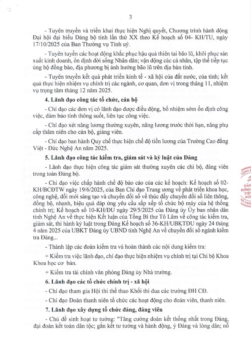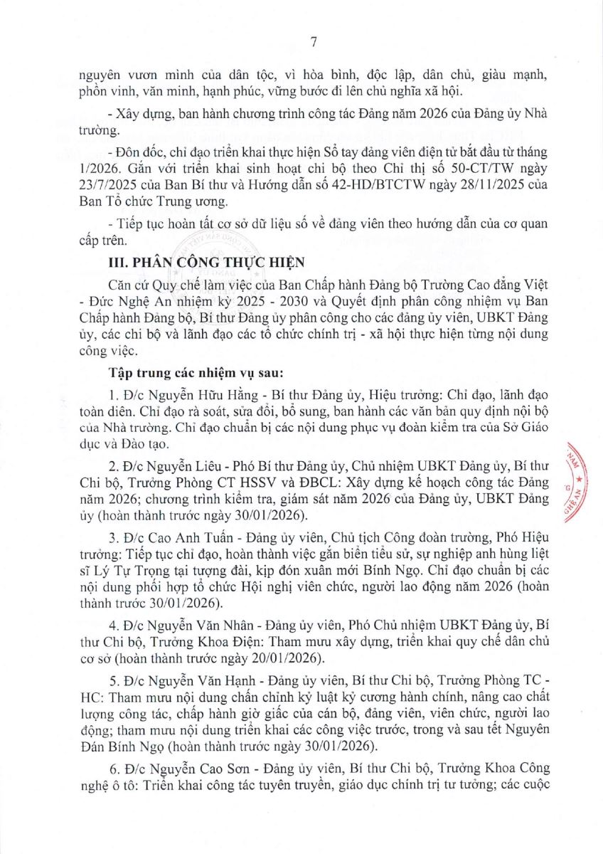 Thông báo số 01-TB/ĐU của Đảng ủy Trường Cao đẳng Việt - Đức Nghệ An Kết luận Hội nghị Ban Chấp hành Đảng bộ phiên tháng 01 năm 2026