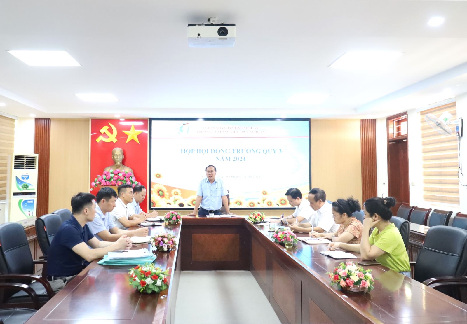 Hội đồng trường đã được nghe tổng kết hoạt động của Trường trong Quý 02 năm 2024 và triển khai phương hướng, nhiệm vụ trọng tâm trong Quý 03 với các nội dung: Thành lập Hội đồng trường nhiệm kỳ 2022 – 2027; tổ chức nhập học cho học sinh, sinh viên Khóa 18; triển khai nhiệm vụ năm học mới 2024 – 2025; phối hợp với đơn vị kiểm định thực hiện đánh giá ngoài chất lượng các chương trình đào tạo các nghề trọng điểm; lập hồ sơ liên kết đào tạo tại các huyện, các cơ sở đào tạo khác, nâng quy mô tuyển sinh các ngành nghề theo nhu cầu xã hội…