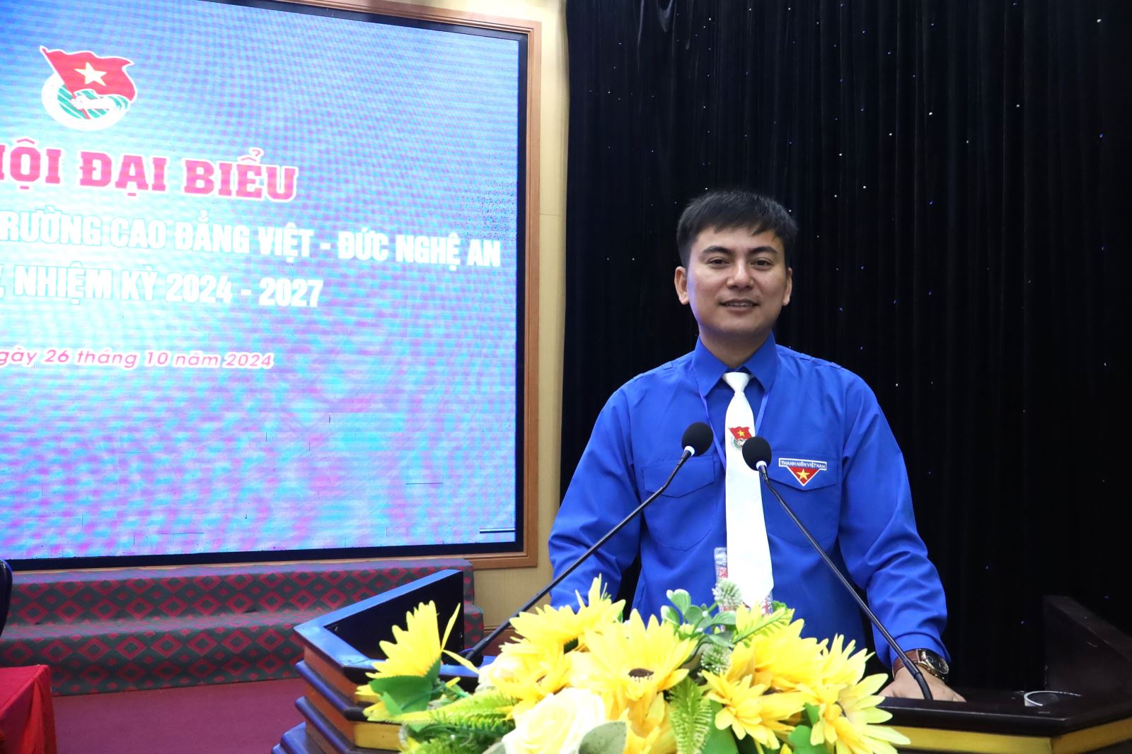 Phát biểu tại Đại hội, đồng chí Trần Linh – Phó Bí thư Tỉnh đoàn, Chủ tịch Hội Sinh viên tỉnh đã ghi nhận những thành tích của Ban Chấp hành Đoàn Trường Cao đẳng Việt – Đức Nghệ An đã đạt được trong nhiệm kỳ vừa qua, đặc biệt là trong phong trào Thanh niên tình nguyện, công tác Đoàn – Hội..., đồng chí Phó Bí thư Tỉnh đoàn cũng hi vọng, trong thời gian tới, Đoàn Thanh niên Trường Cao đẳng việt – Đức Nghệ An tiếp tục phát huy sức trẻ, sự sáng tạo để có nhiều đóng góp hơn nữa trong các hoạt động do Tỉnh đoàn, Thành đoàn phát động.